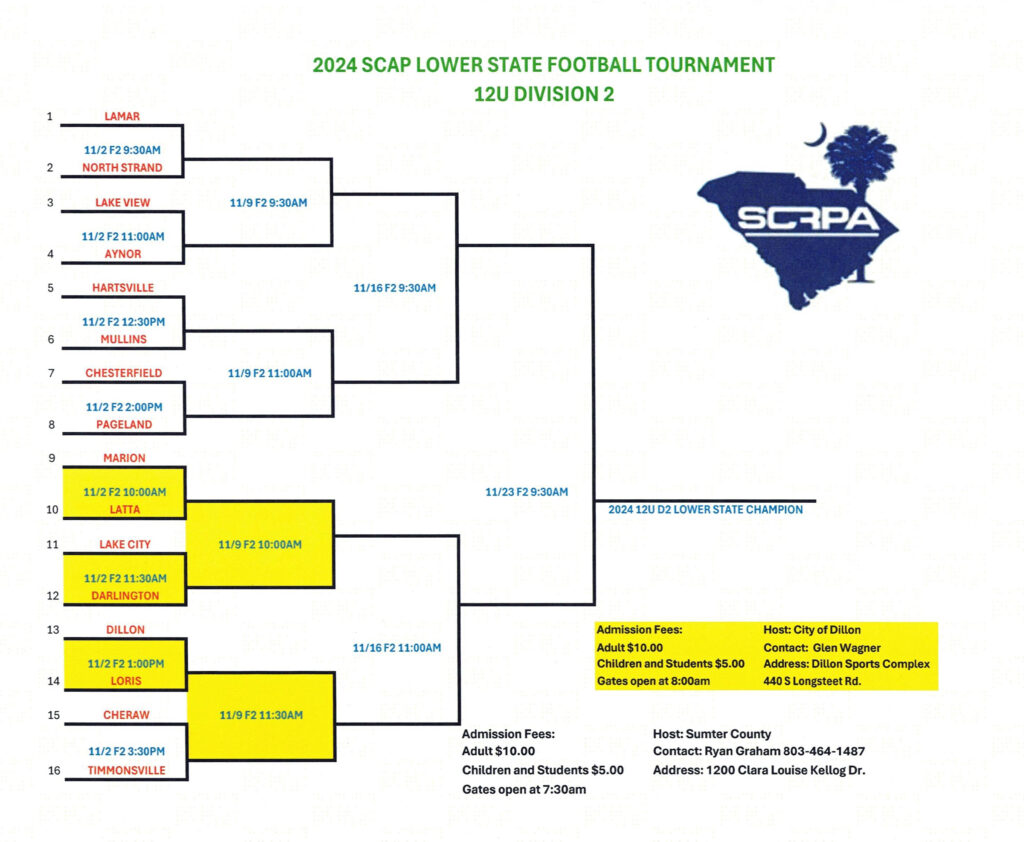 2024 SCAP LOWER STATE FOOTBALL TOURNAMENT (10U Division 2 and 12U Division 2) BRACKETS