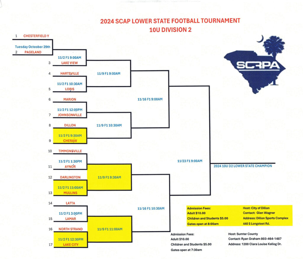 • 2024 SCAP LOWER STATE FOOTBALL TOURNAMENT (10U Division 2 and 12U Division 2) BRACKETS