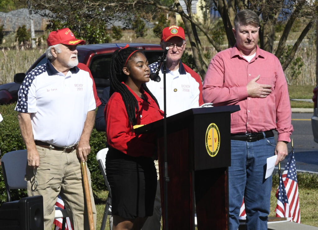 The Pledge of Allegiance was led by Ryan Carter of Dillon High School. Keniah Ariel Owens of Dillon School sang “God Bless America.”