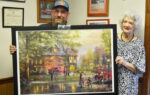 Pauline Brown presented this lovely puzzle picture that she put together and framed to Chief Ray McCormick of the Floyd Dale Fire and Rescue Department. It is a Thomas Kinkade…
