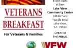 A Veterans Breakfast will be held on November 15th at 9 a.m. in Lake View.
