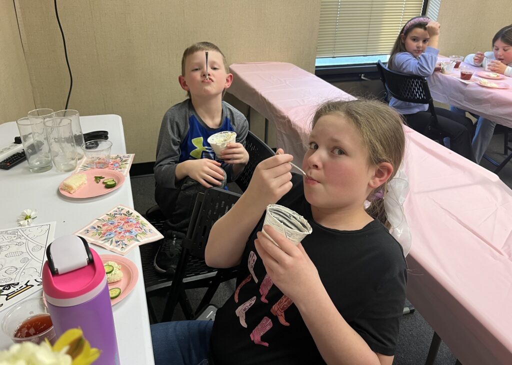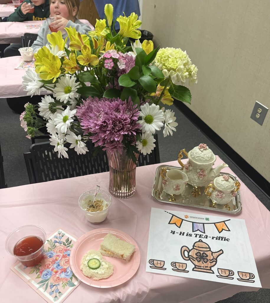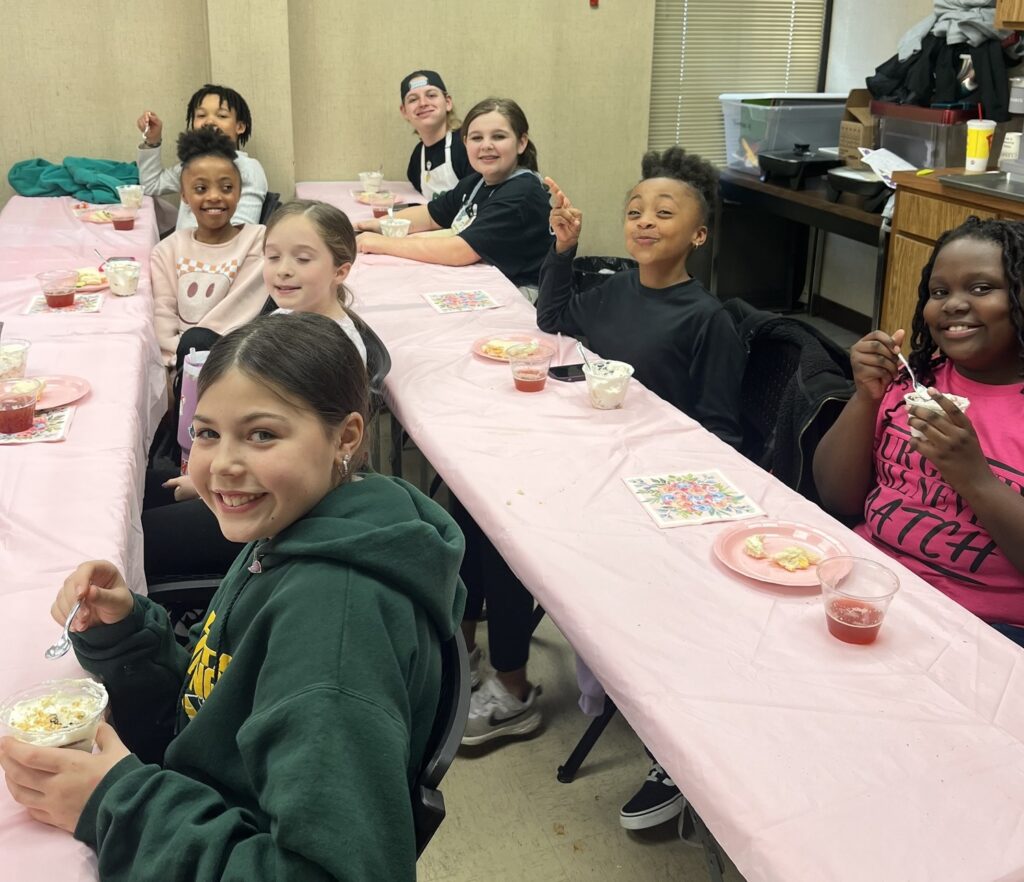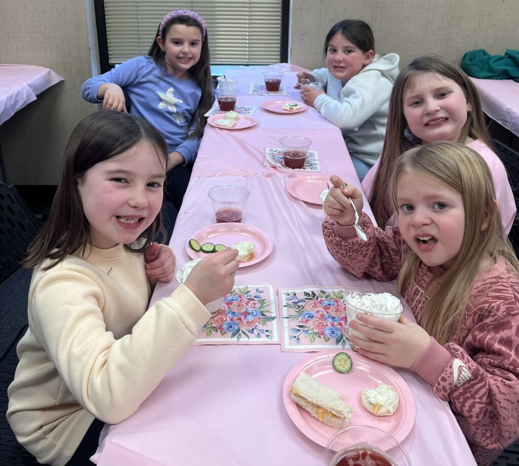 The 4-H Cooking Club held a tea party in honor of Valentine’s Day this month. The older group prepared cucumber and pimento cheese sandwiches while the younger group made dessert. They came together for a shared tea party at the end of the club meeting.