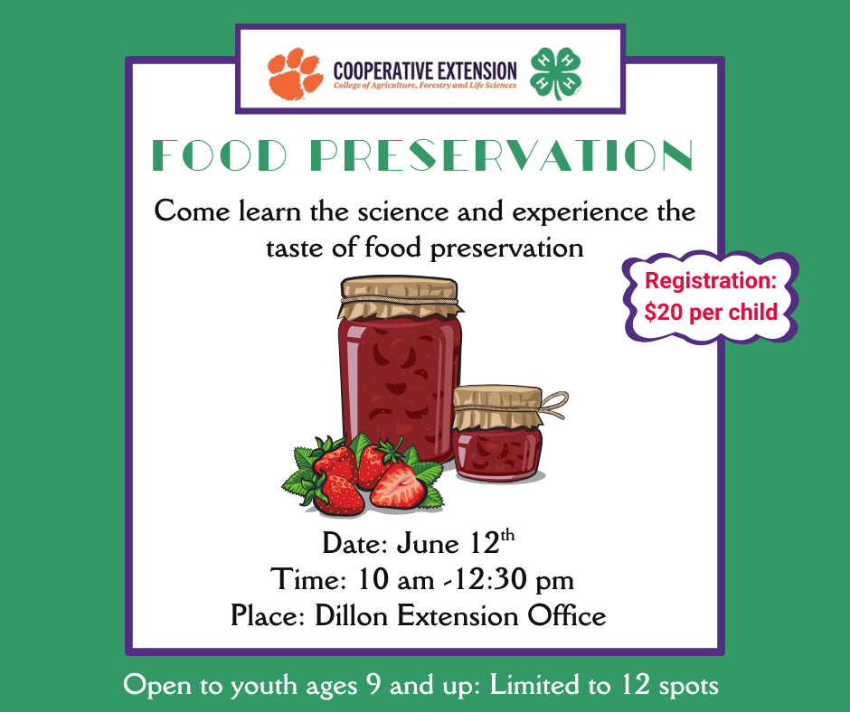 Dillon County 4-H will offer sewing basics and food preservation classes for youth.
