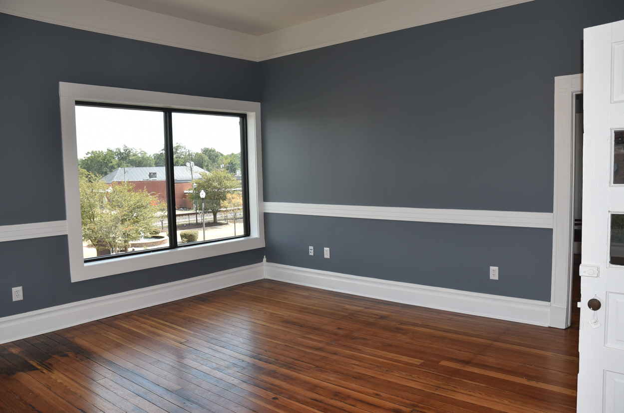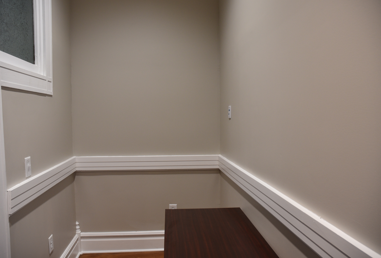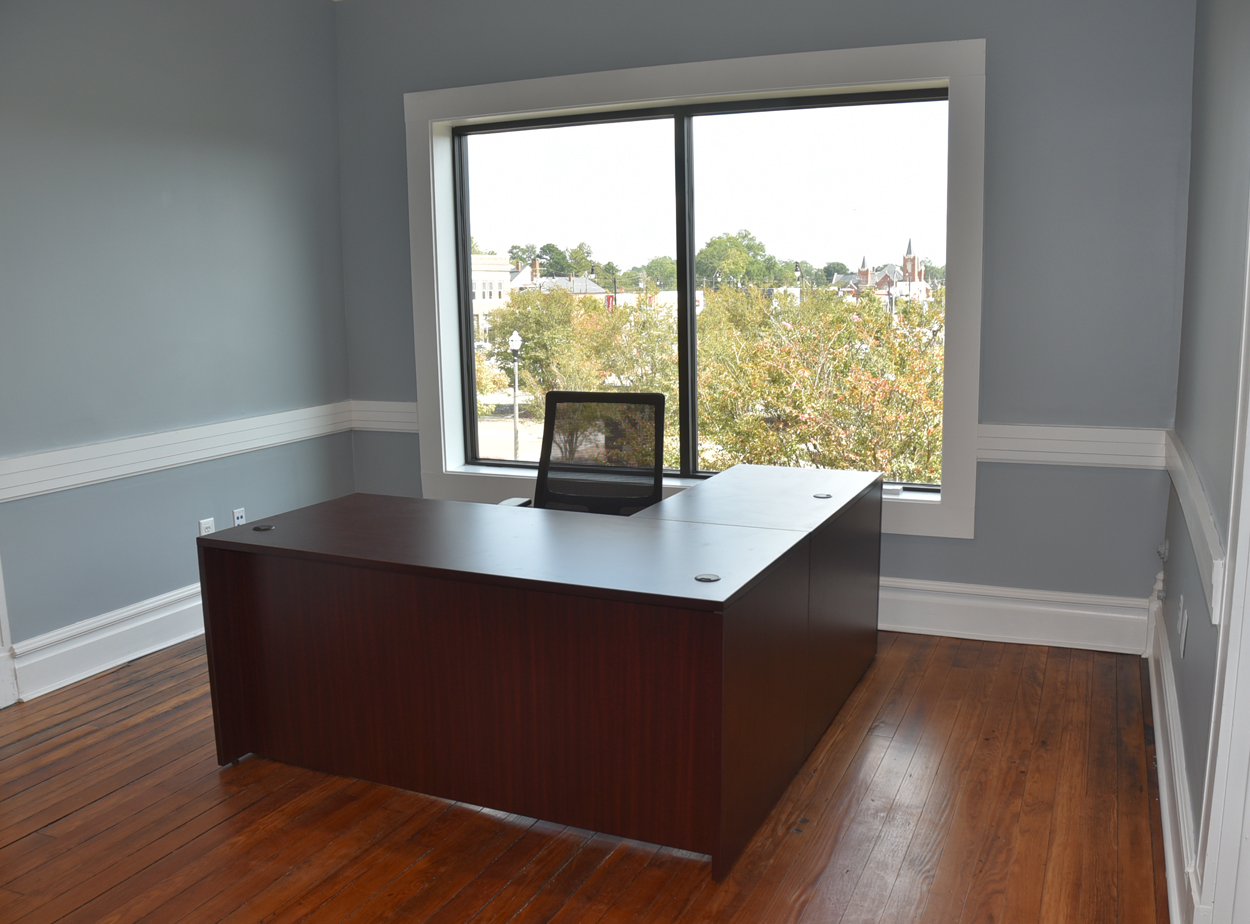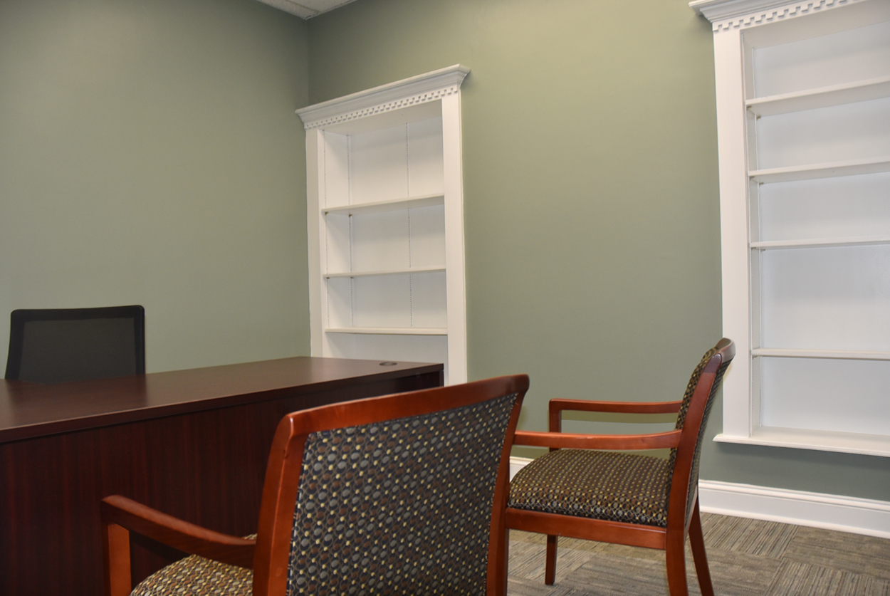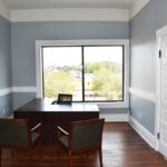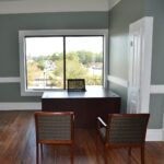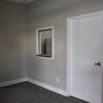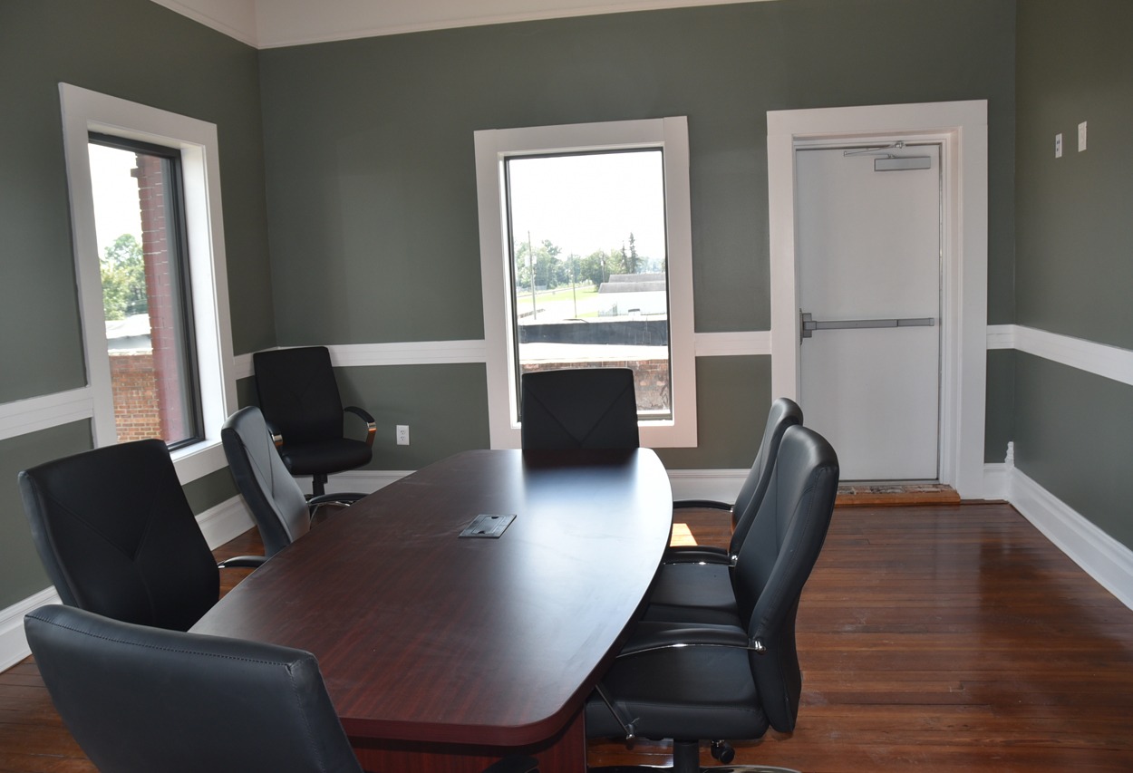 The staircase is the original and the original flooring is at the entrance to the stairs. The original wood is around the doors, and it was painted in keeping with the beauty of the building. There are several investigators offices, two interrogation rooms, the chief’s office which has an amazing view, a conference room, and two bathrooms, one of which has a shower in the event one is needed by an officer immediately. The colors upstairs also add to the overall charm of the renovation.