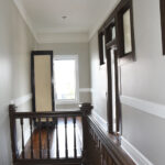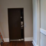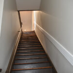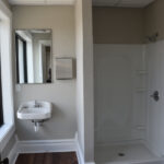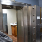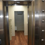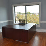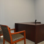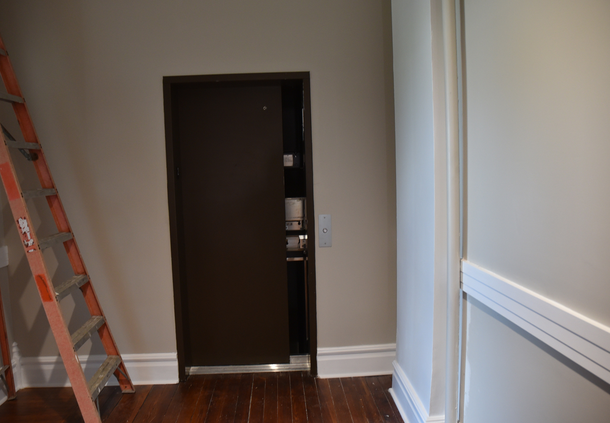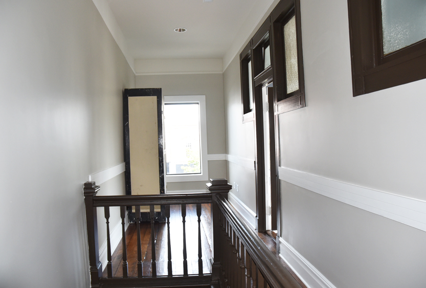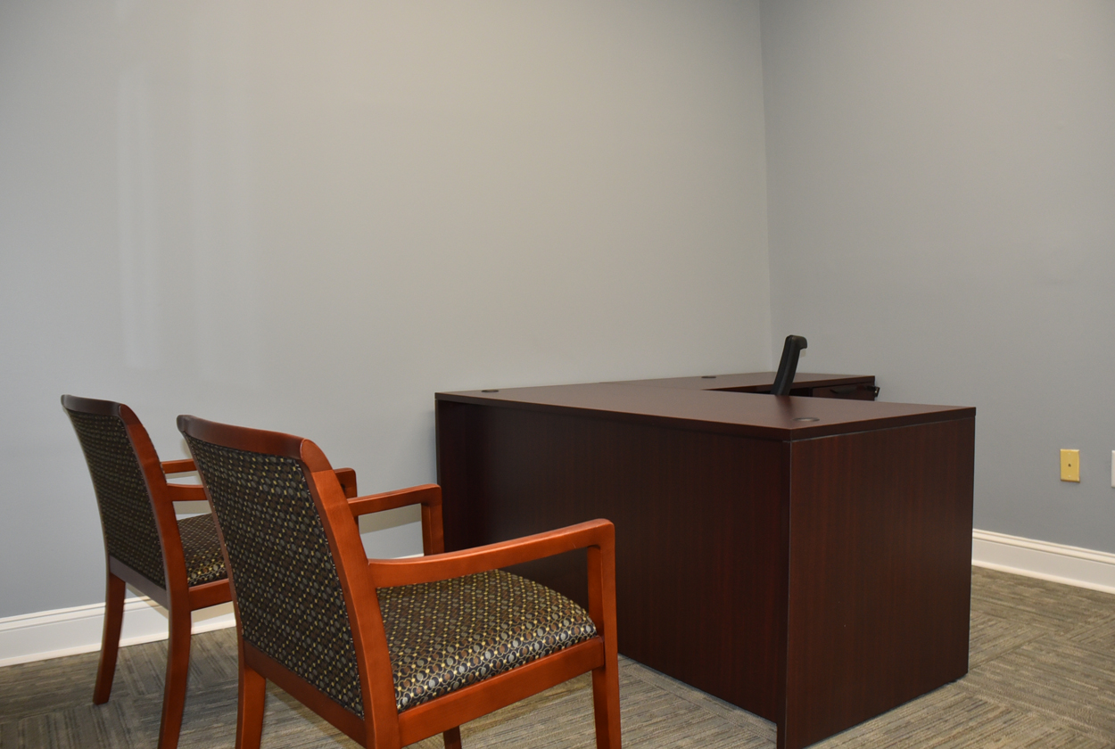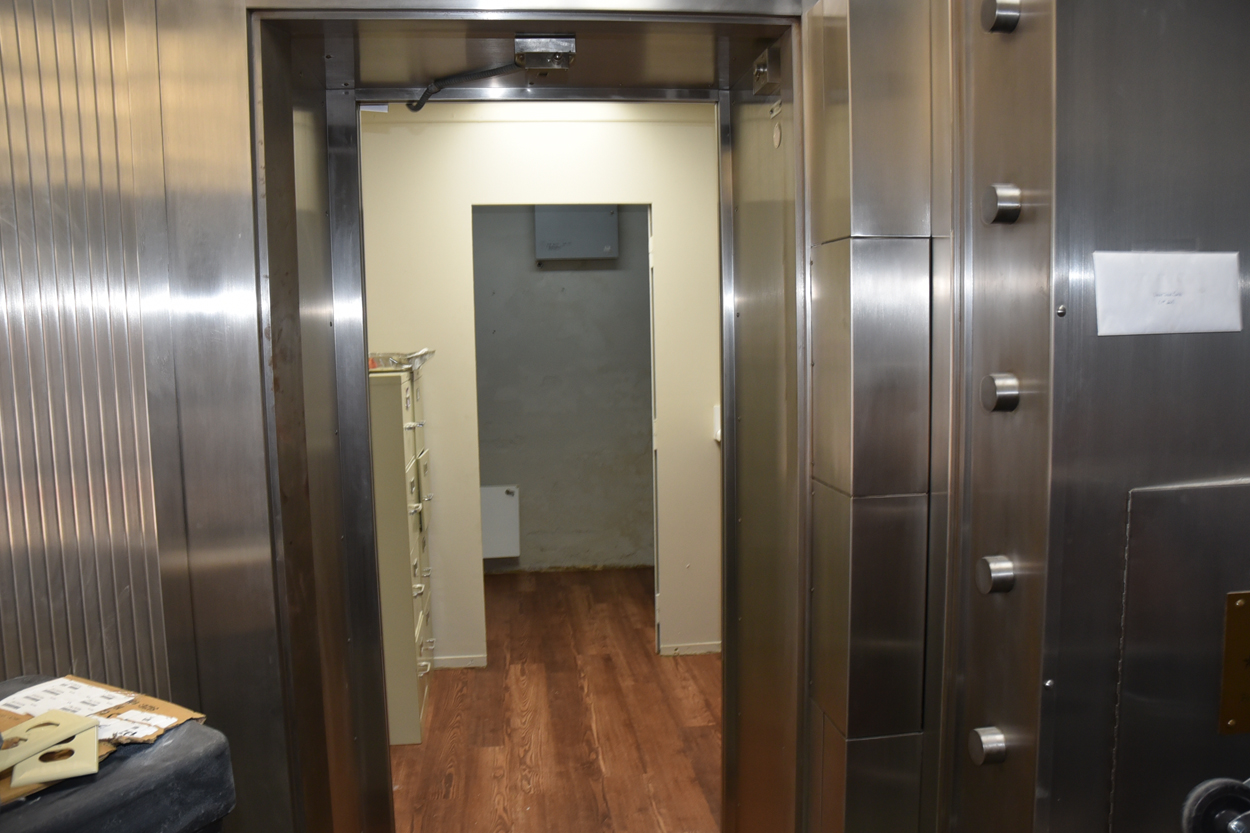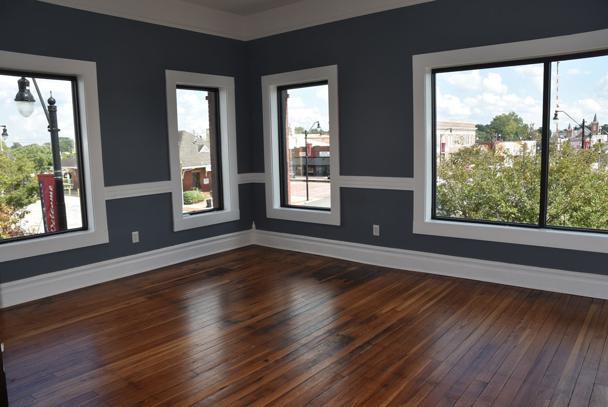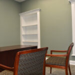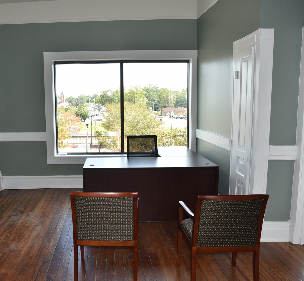 The staircase is the original and the original flooring is at the entrance to the stairs. The original wood is around the doors, and it was painted in keeping with the beauty of the building. There are several investigators offices, two interrogation rooms, the chief’s office which has an amazing view, a conference room, and two bathrooms, one of which has a shower in the event one is needed by an officer immediately. The colors upstairs also add to the overall charm of the renovation.