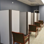 The department is a sight to behold. The entrance for the public to the building will be from the Main Street side. There are several cubicles upon entering the building which will be shared by patrol officers. Then there are several offices for administrative staff and officers, a training room, and a break room. The colors accentuate the beauty of the building. There is an elevator that goes up to the top floor.