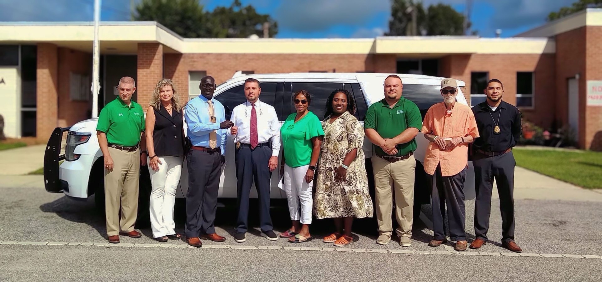 The keys were presented to Chief Alan Rogers of the Latta Police Department by Elmore Bethea, an Investigator with Anderson Brothers Bank, along with several ABB team members who attended the event. The vehicle will serve as a valuable resource for the department as it continues its mission to protect and serve the citizens of Latta.