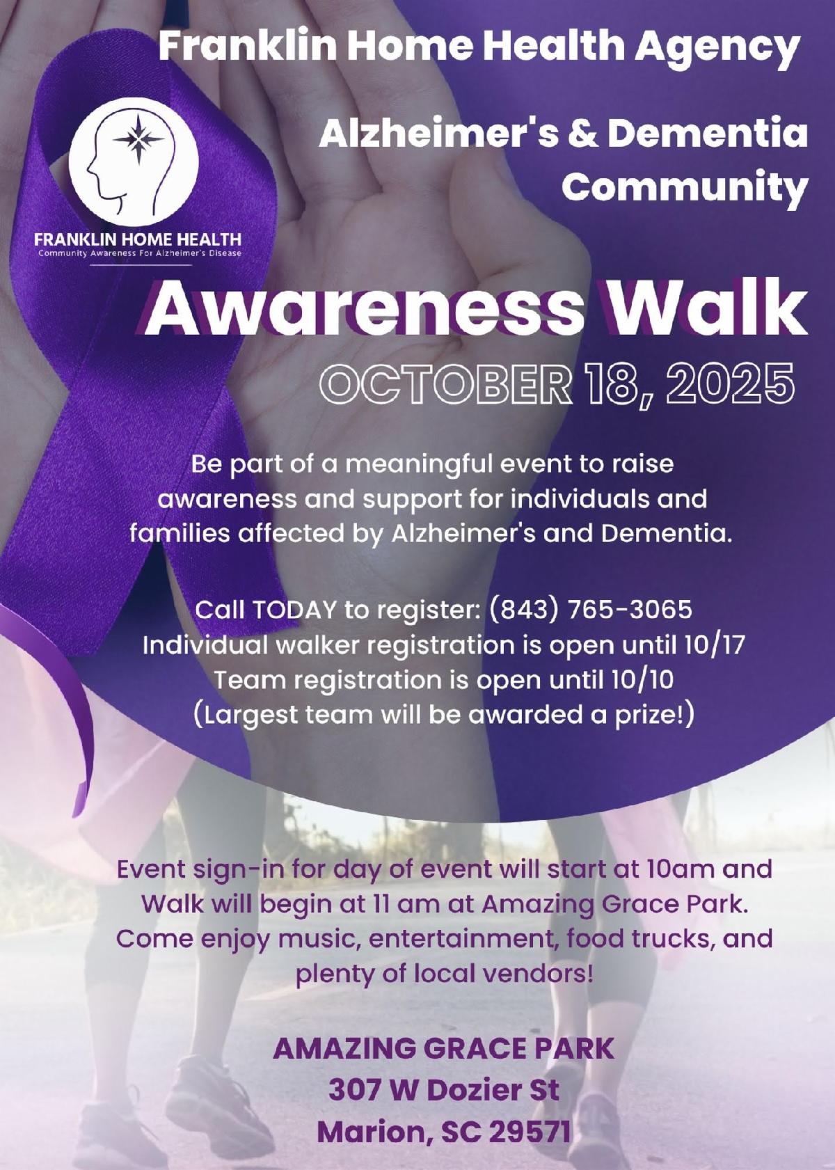 • Alzheimer’s Awareness Walk Is October 16th