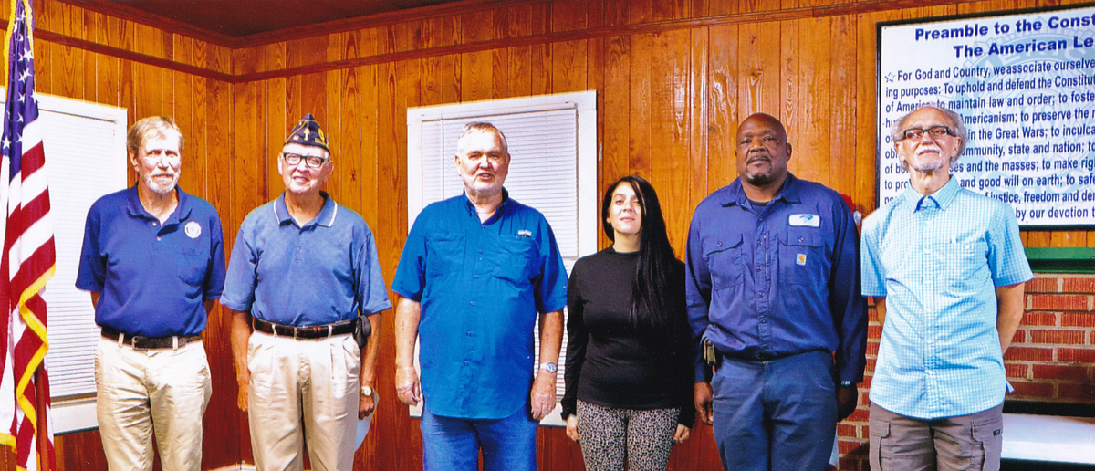 In the picture left to right is the Post Commander Asa McDuffie, Post Adjutant Lloyd Brown, Post Financial Officer Levern Hayes, Post Service Officer Stephanie Maza, Post Chaplin Robert Sealey, and Post Historian John Humphrey.