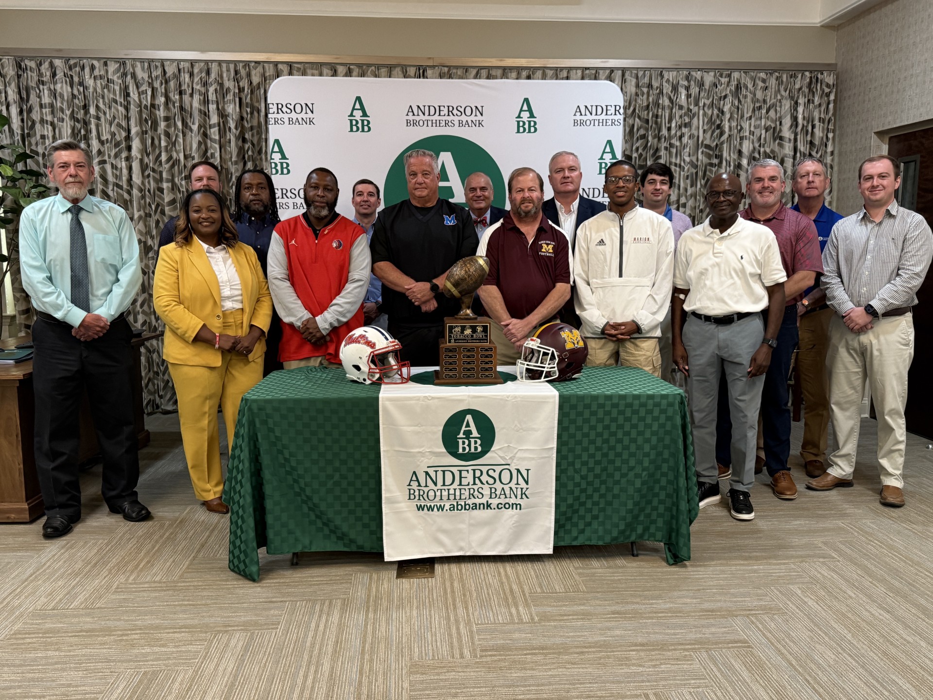 The Tobacco Bowl officially began with a press conference on Monday, September 22, 2025, where local dignitaries, Anderson Brothers Bank representatives, and Marion County School District staff gathered to highlight the event and celebrate its impact on the community.