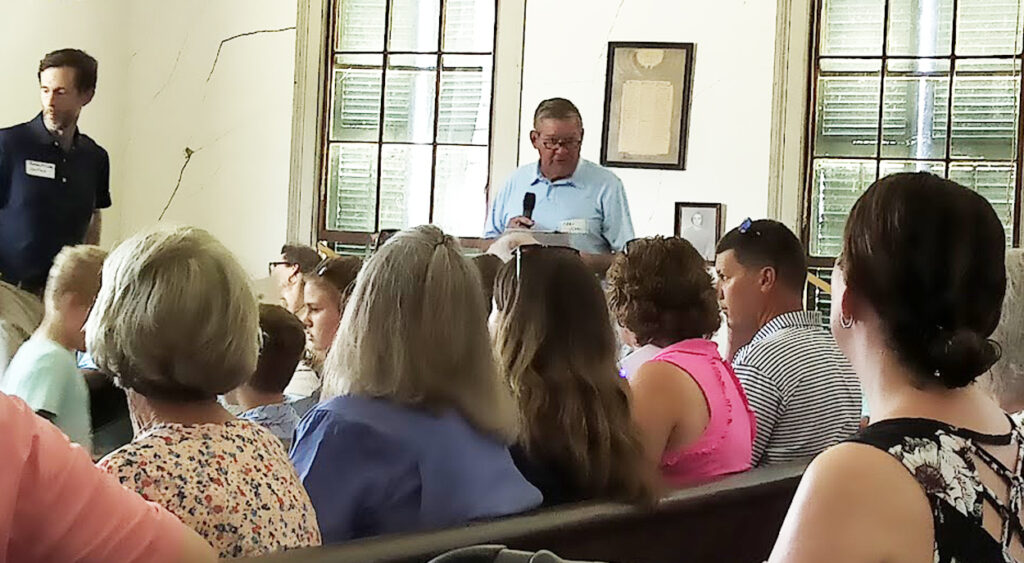 The annual Isham and Mary Hays Watson Descendants Association Reunion was held on Sunday, June 22, 2025, at the historic Antioch Church in Sellers at 11:00 a.m. The first reunion was held in 1904. President Thomas McElveen presided over the meeting. During the service, several hymns were sung, the minutes of the last meeting were read, the treasurer’s report, and a building and grounds report was given. The announcement of a large gift to the association was made. Memorials were read and flowers were placed in a vase in memory of those family members who have passed by Ginnifer Lee McGill-Kirk and family. Special recognitions were given. The youngest person in attendance was four years old. The oldest person was over 90 years old. The family members who traveled the fartherest were from Richland, Missouri and traveled 975 miles to be at the reunion. The next fartherest was from Miami, Florida, and traveled 775 miles. There were 92 people in attendance at the reunion. The number from the family branches included Matthew-15, James-9, Elizabeth-1, Samuel-2, William-63, and Euphemia-1. After the service, several enjoyed lunch on the grounds.