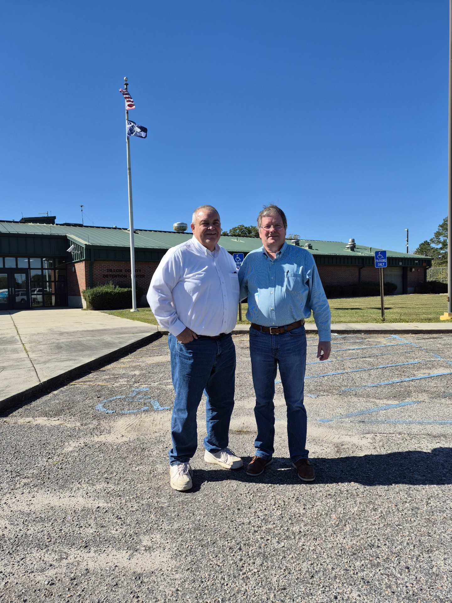 Another baptism at the Dillon County Correctional Center today. This is the 32nd baptism this year. This is a continuing non-denominational ministry of the Dillon County Ministerial Alliance. Pictured are Henry Altman of Main Street Global Methodist Church and James Orr, Pee Dee Baptist Association of Churches. Many thanks to Capt. Sarah Samuels, detention center commander. All glory to Jesus Christ.