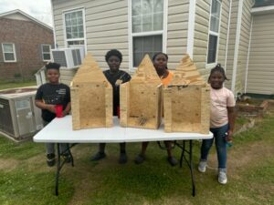 All the kids underwent a 4-week training program focused on designing, safely utilizing tools, and constructing Hope Houses. This program included hands-on workshops and team-building activities. The mentees decided to create Hope Houses for people experiencing homelessness, akin to sidewalk libraries. Hope Houses serve as drop-off points for canned goods or toiletry items for the community’s less fortunate. Our Hope Houses are now up and running, ready to serve our community! These houses will be restocked weekly at three locations: Calhoun Street across from Manning Baptist Church, the alley between Hampton and Main Street, and behind the laundromat on the corner of 301 and Calhoun.