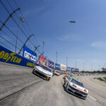 On Lap 284, Reddick’s ill-timed bid for the lead went awry, and his No. 45 Camry slid up the track into Buescher’s Ford, pinning it against the outside wall in Turn 4. Both cars were damaged and unable to maintain pace, and Keselowski charged into the lead on Lap 285.