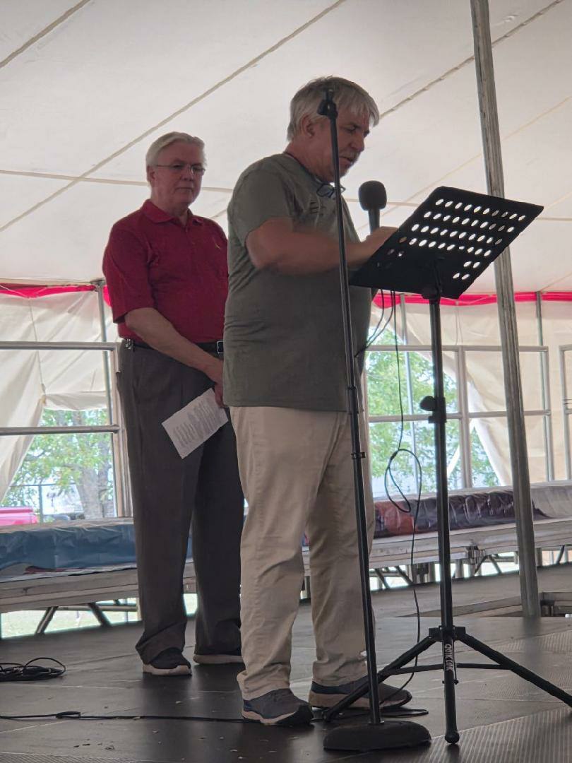 Follow Me Crusade Mitchell Gough offered prayer and introduced the speaker, Parker Coulette of Summerton, S.C. He gave his testimony from his experience at the Clarendon County Tent Revival. His experience made him a servant of the Lord. He now speaks at churches and other events. His wife also rededicated her life. The recent tent revival has definitely changed the entire Coulette Family!