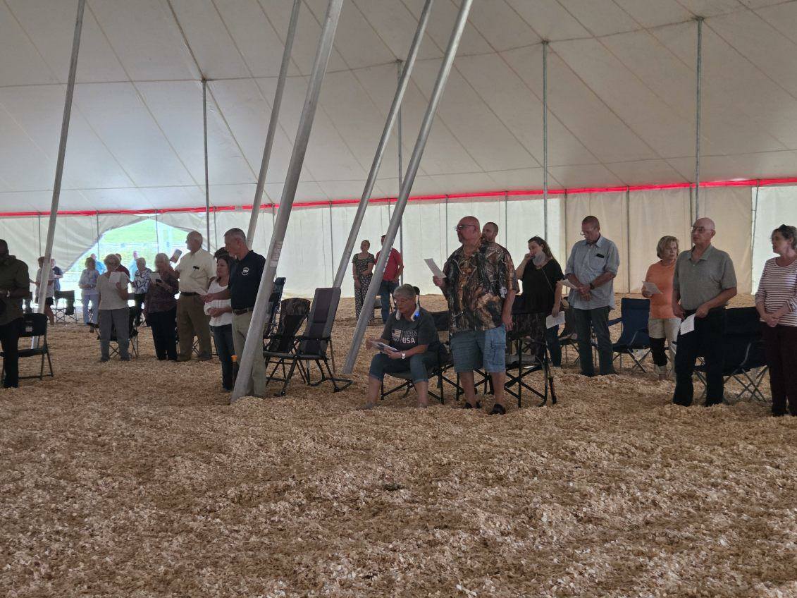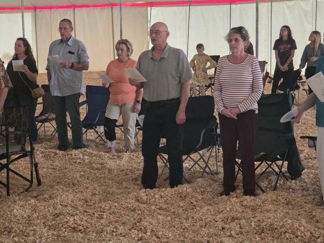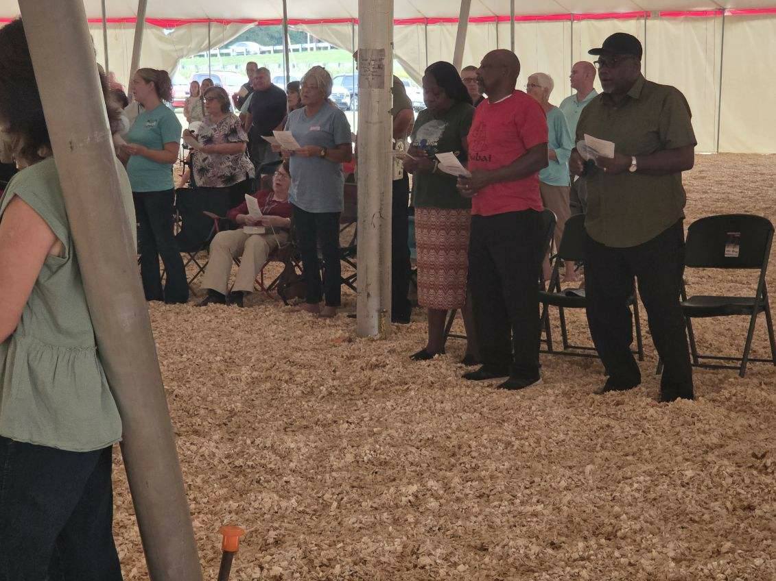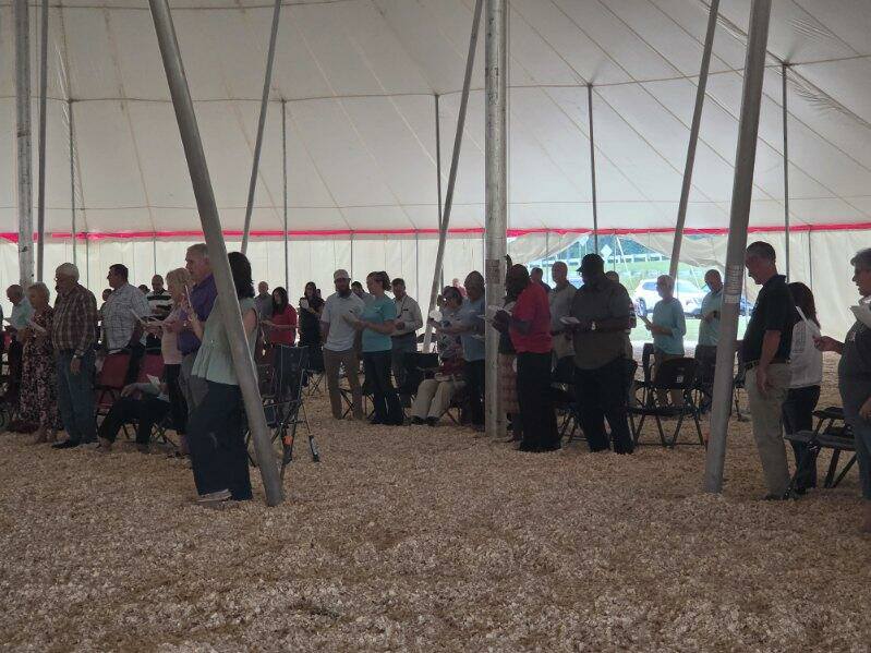 Everyone joined in prayer for the tent revival including the praying of the tent, the poles, the grounds, etc.