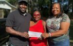 Dillon County Councilwoman Detrice Dawkins presents an accommodations tax check to Bobby Porter and Kimberly Porter of Boys To Men & Girls With Purpose.