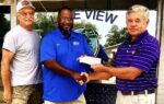 Lake View Recreation Director Kenny Bethea and Mayor David Suggs accept an Accommodations Tax check for Lake View’s Rec Department from County Councilman Dennis Townsend.