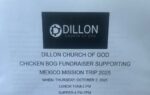 The Dillon Church of God is holding a chicken bog fundraiser for a Mexico Mission Trip On Thursday, October 2. Lunch 11 a.m.-2 p.m. and supper 4 p.m.-7 p.m.