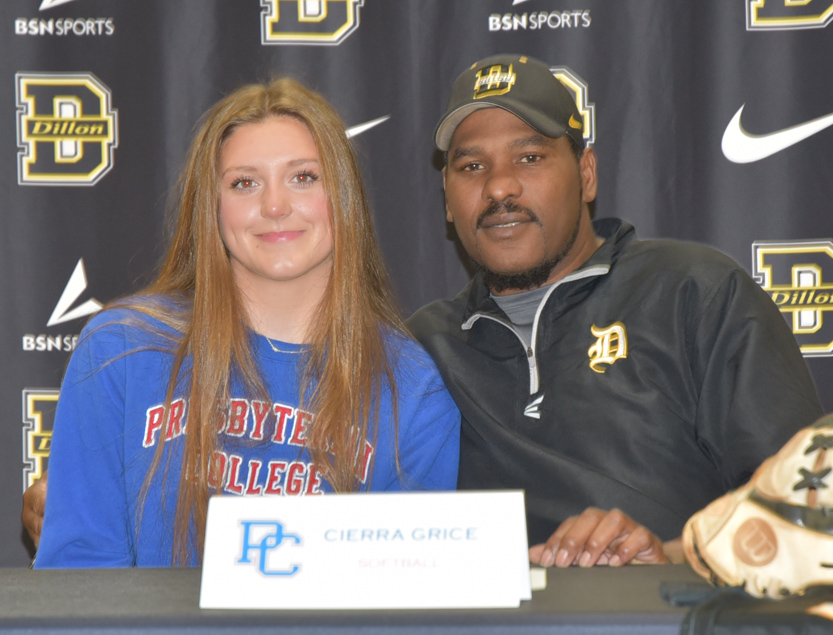 Dillon High School star softball athlete Cierra Grice took the next step in her softball and academic career as she signed with Presbyterian College on Wednesday, December 18, at noon, at Dillon High School.