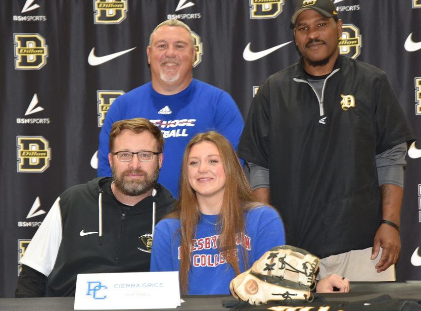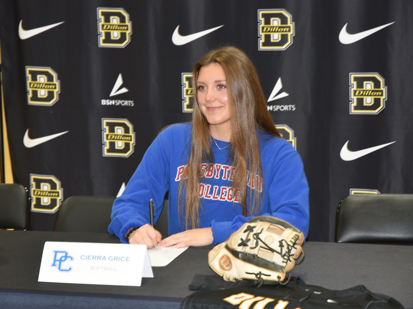 Dillon High School star softball athlete Cierra Grice took the next step in her softball and academic career as she signed with Presbyterian College on Wednesday, December 18, at noon, at Dillon High School.