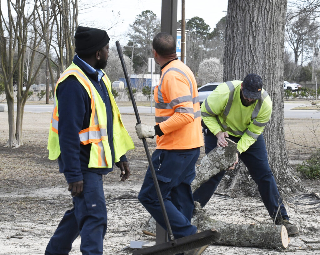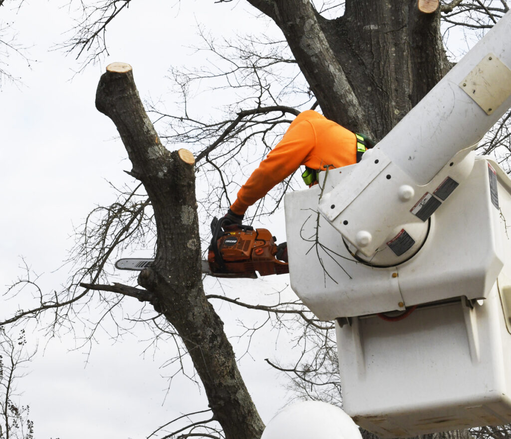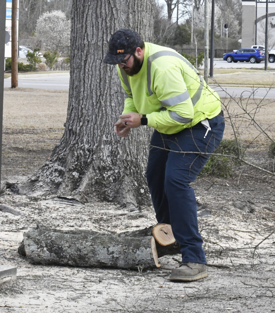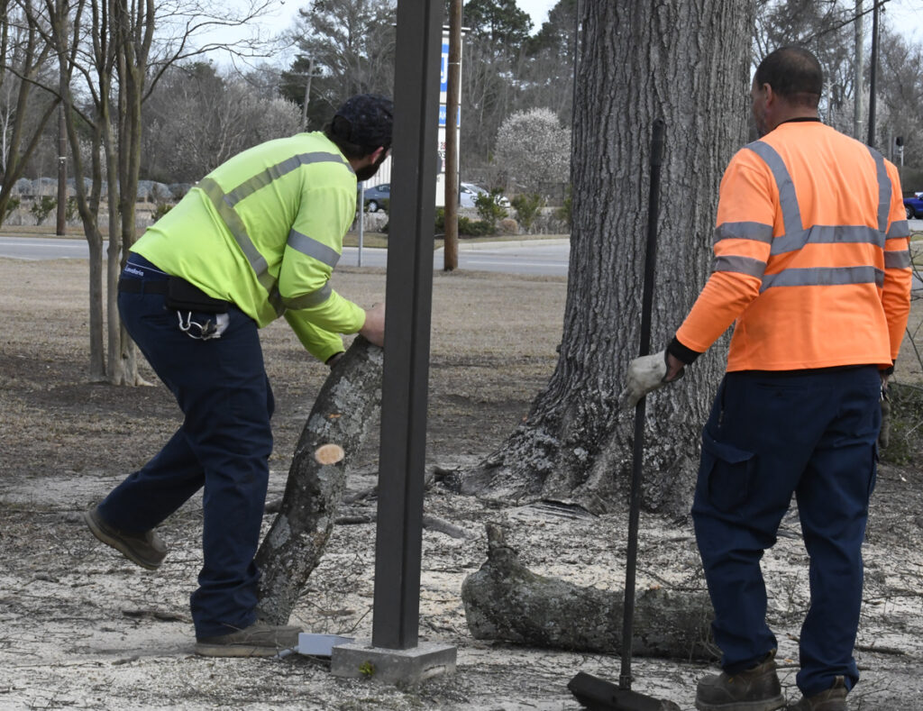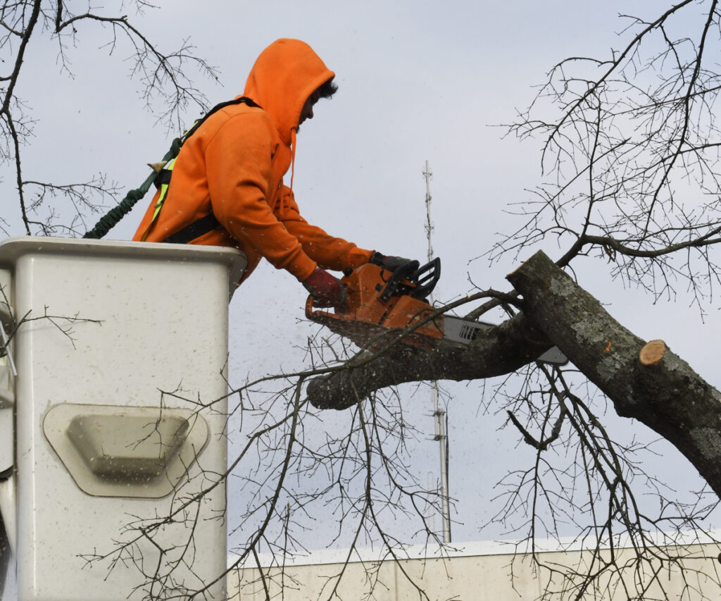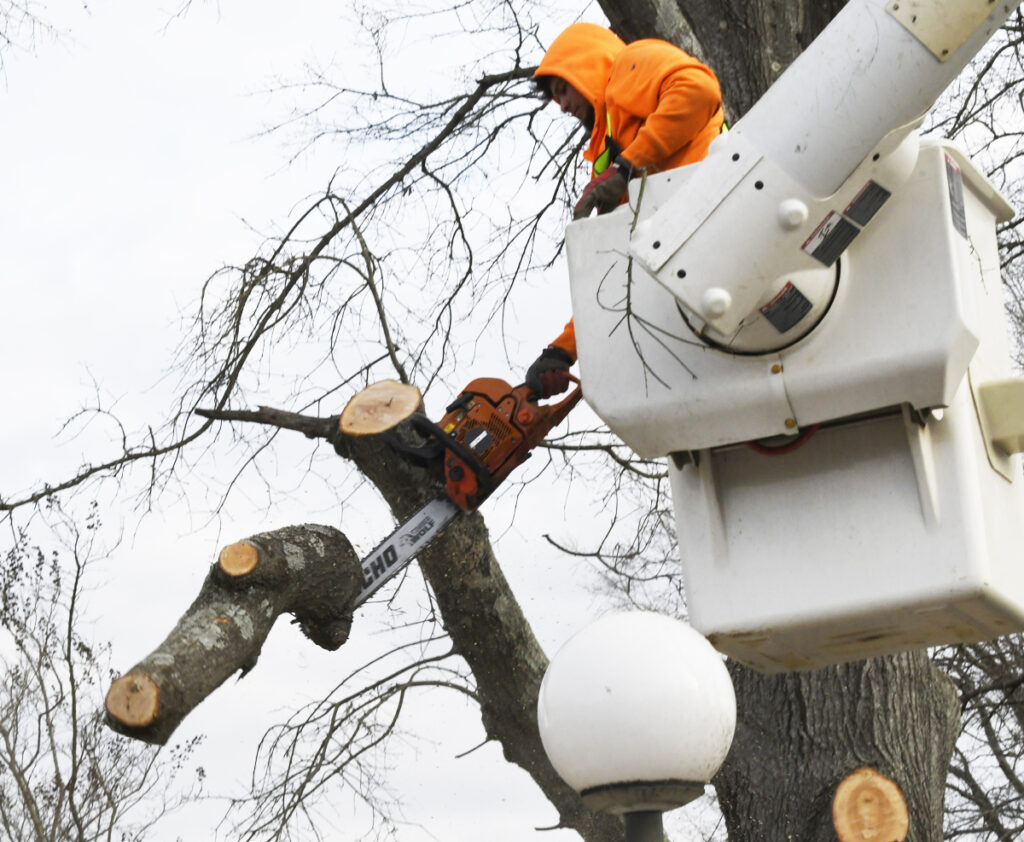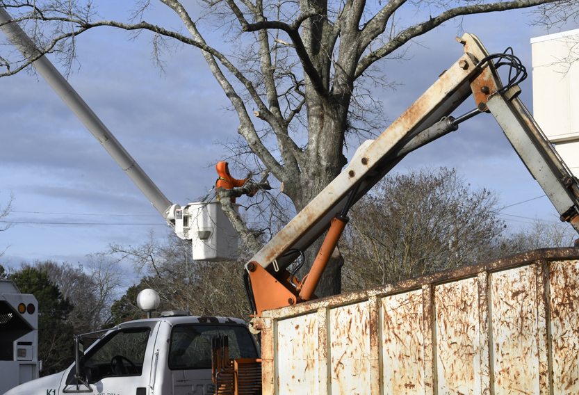 The City of Dillon Street Department pruning trees at the Dillon City-County Complex.