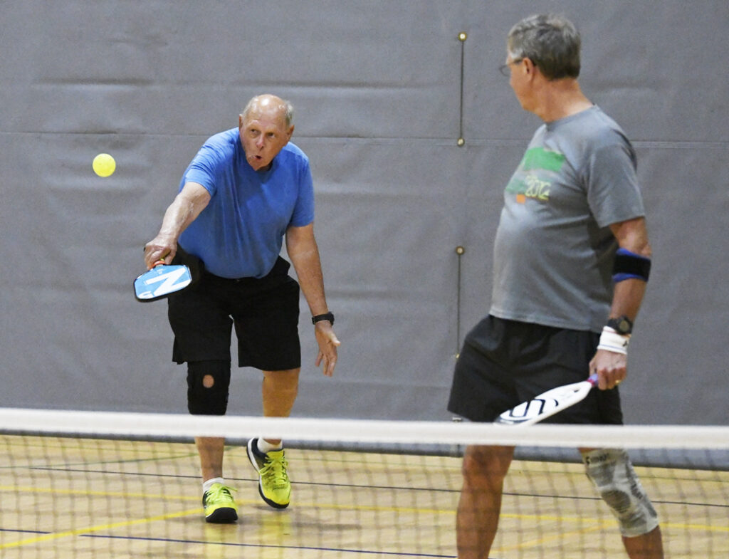 Pickleball is fun, friendly, and social. Pickleball can be played indoors or outdoors. It was invented in 1965 as a children’s backyard game. Pickleball can be enjoyed by young and old.