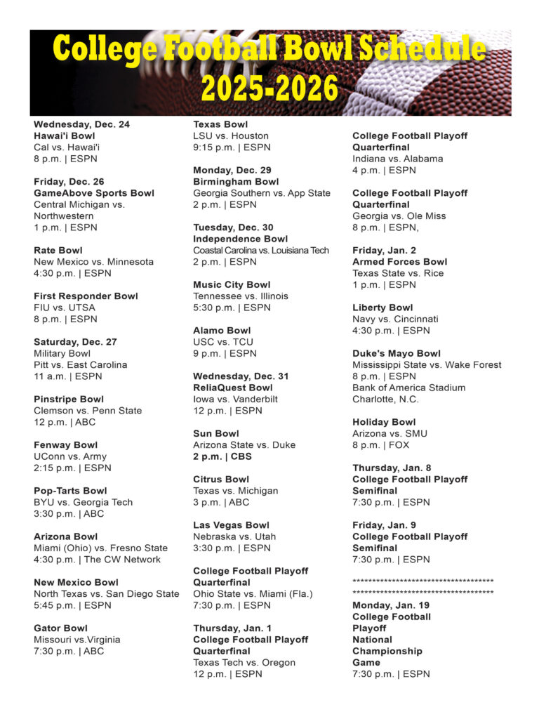 College Football Bowl Schedule 2025-2026