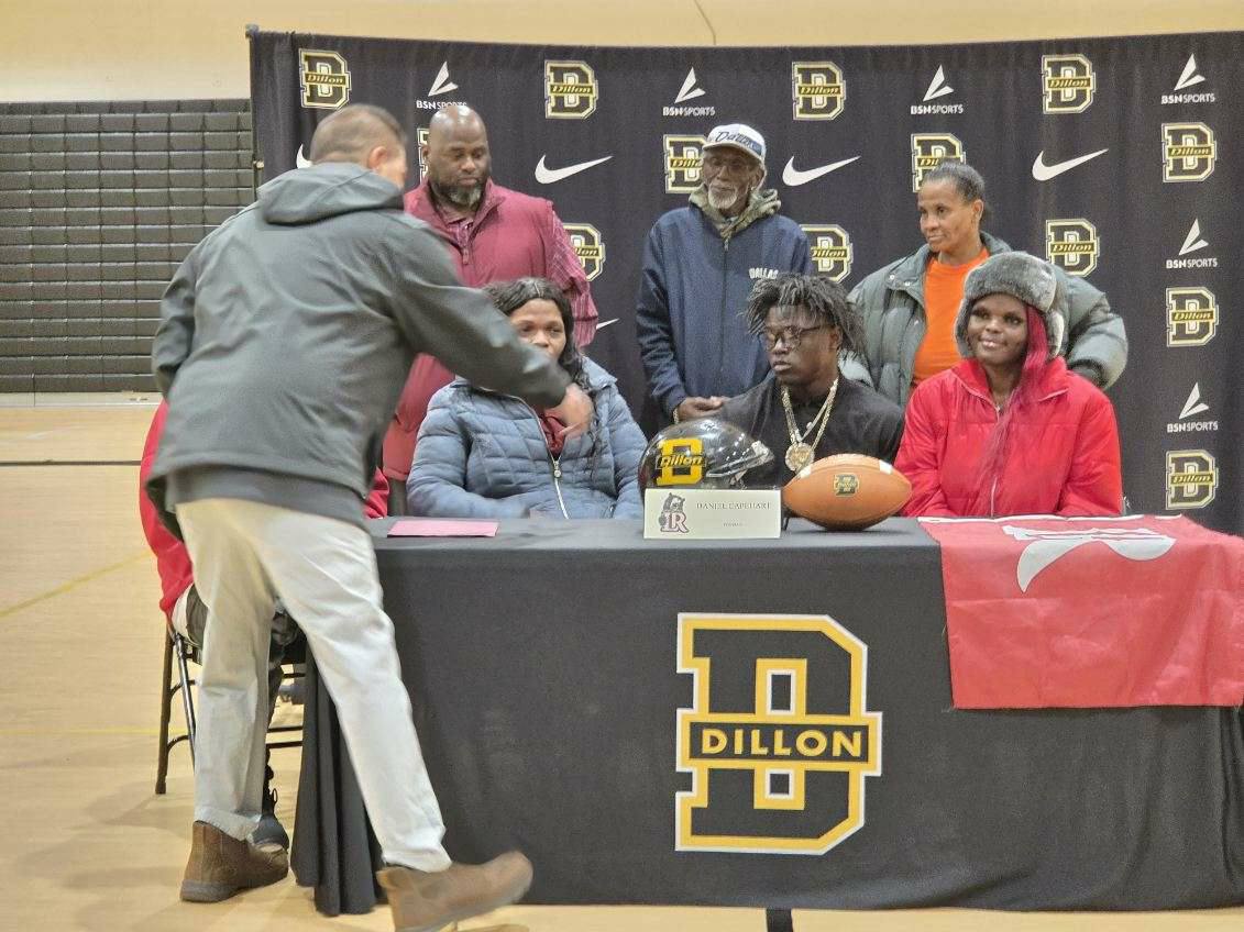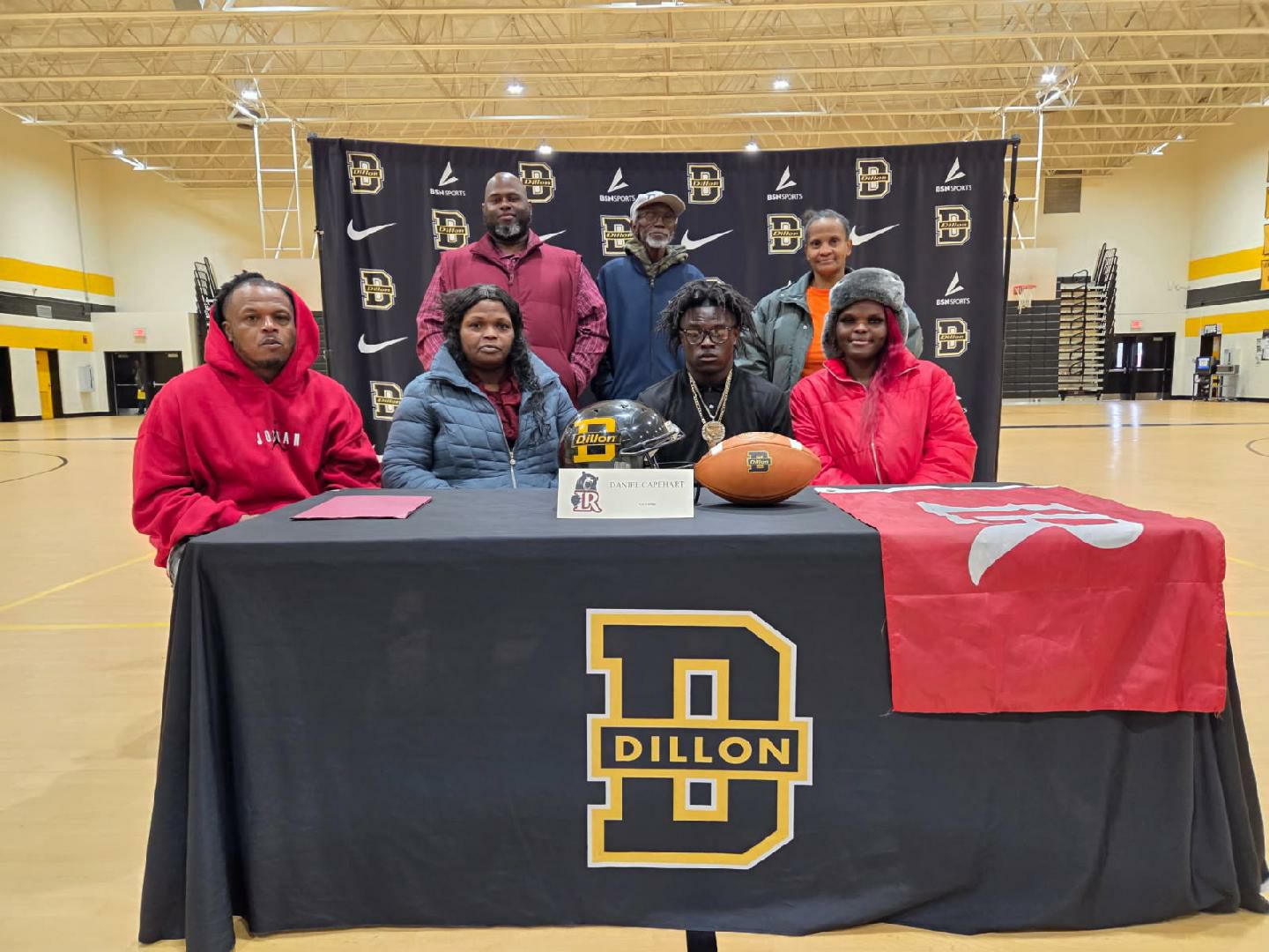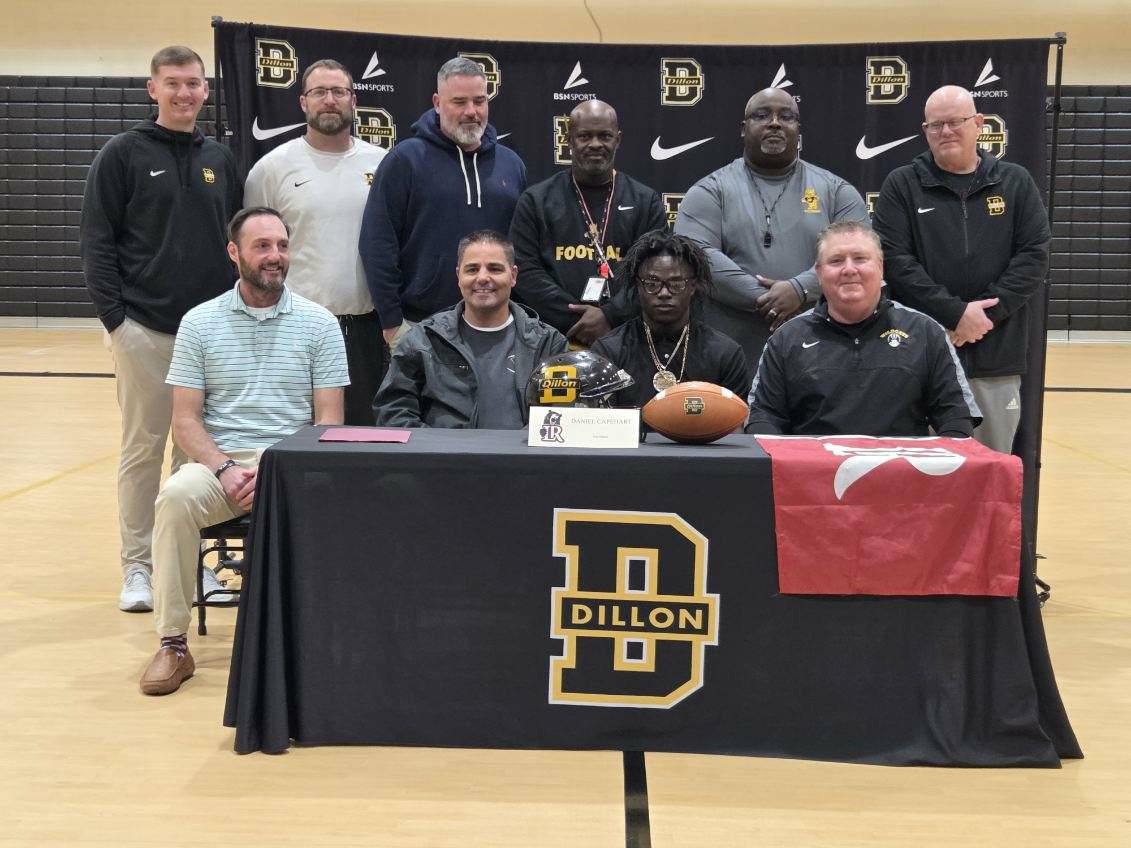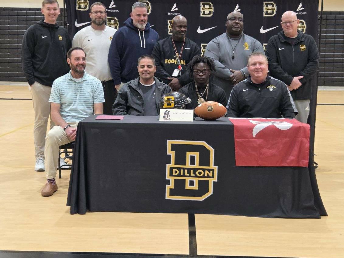 Daniel Capehart signed with Lenoir-Rhyne of North Carolina, on Thursday, February 5, at Dillon High School, to continue his pursuit of an college education and to continue to play football at the next level.