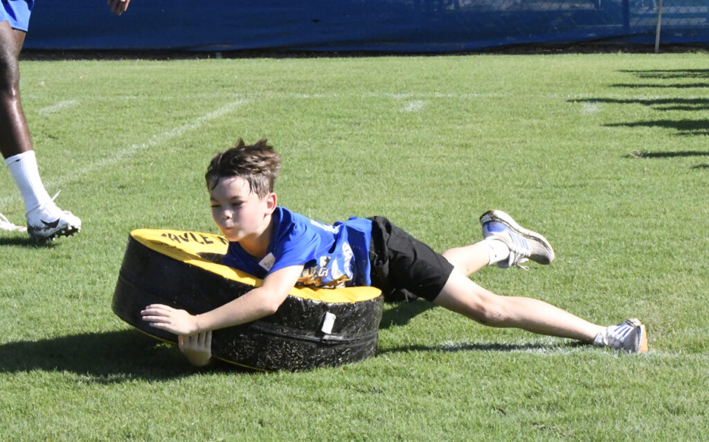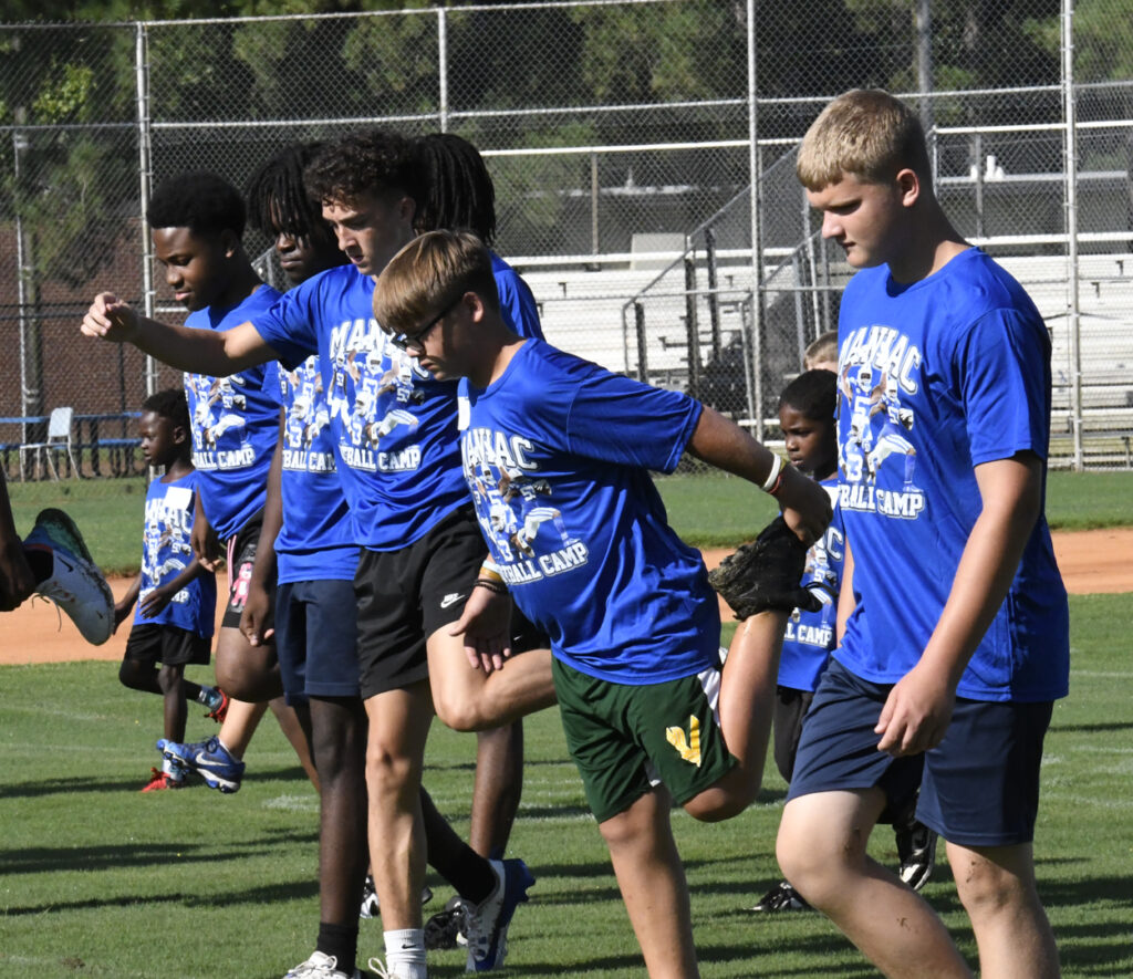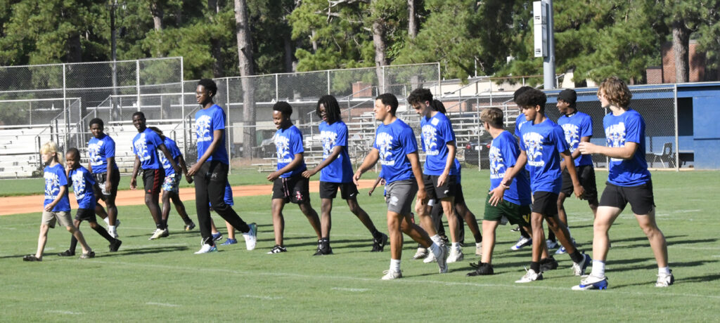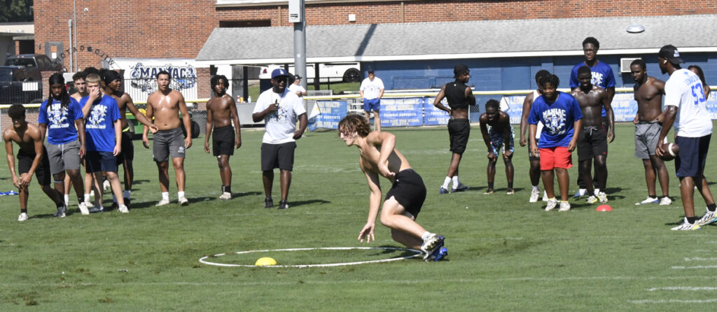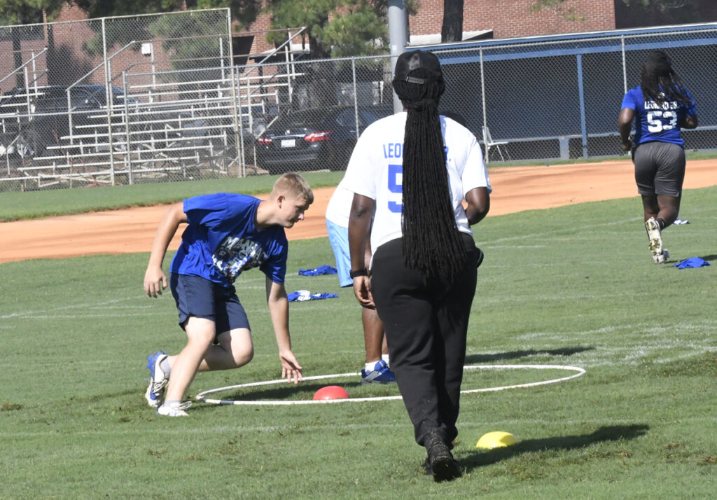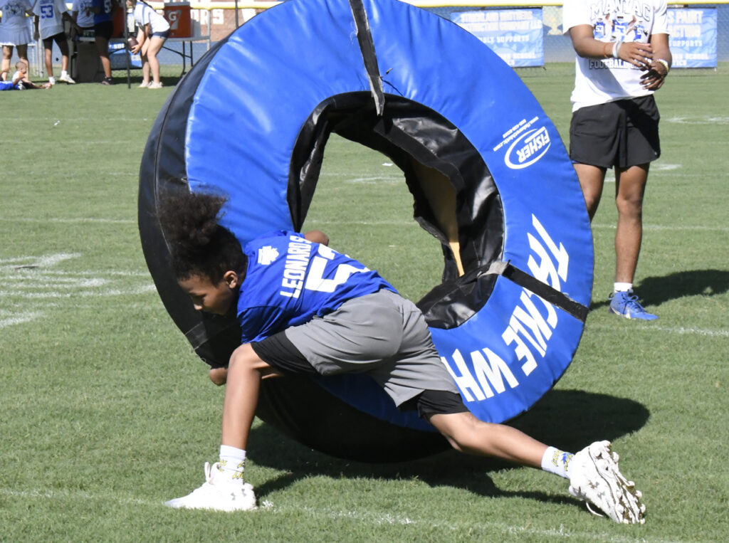 At 9:00 a.m., Darius Leonard led in the warm-up exercises. Following the exercises, the group was split into 4 groups with leaders from the Maniac Foundation leading in the football practices.