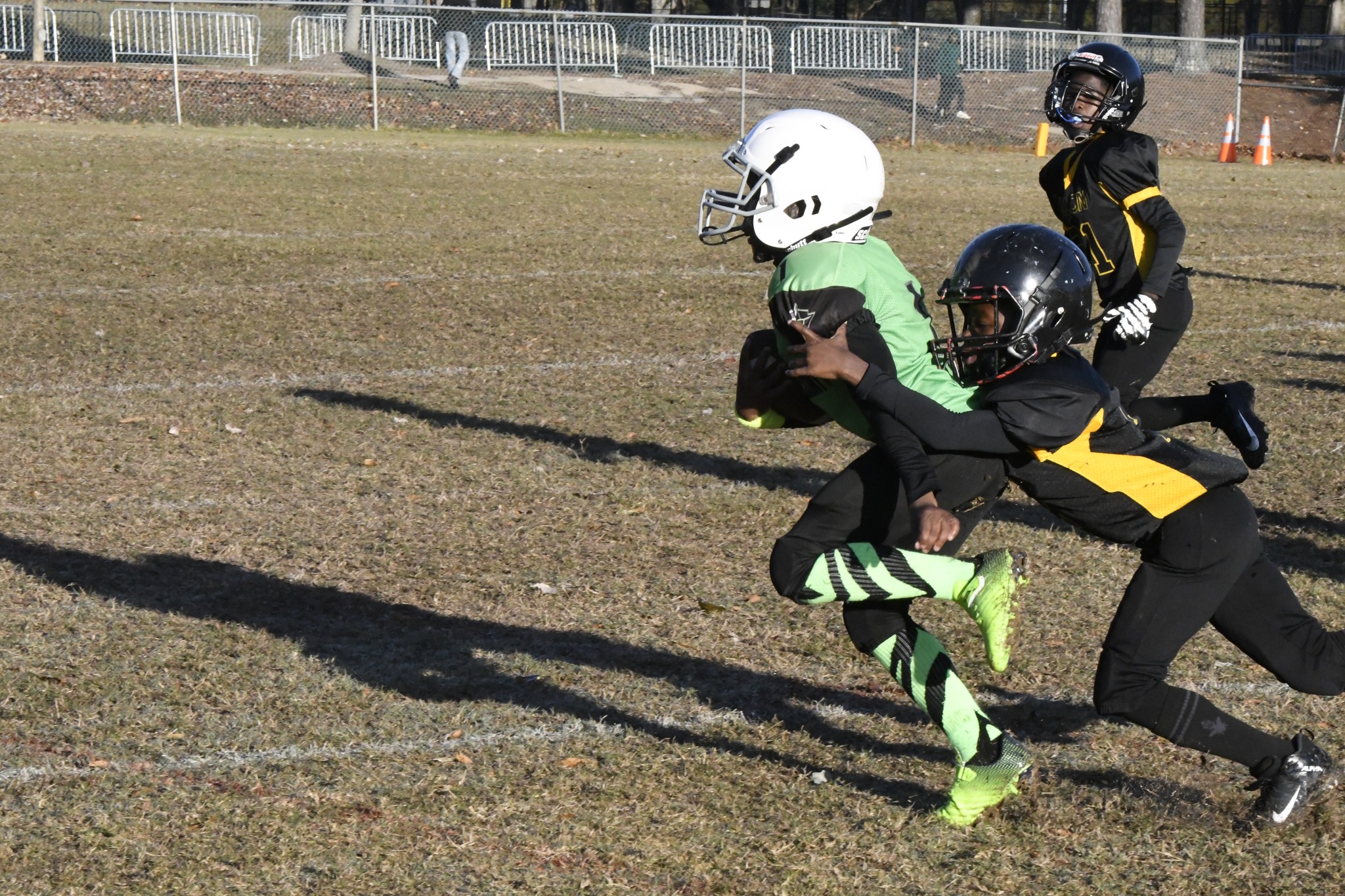 Darlington’s #4 crossed the goal line with 2:23 remaining in the first quarter. The 2-point conversion attempt failed. After this score, the game was a defensive battle.