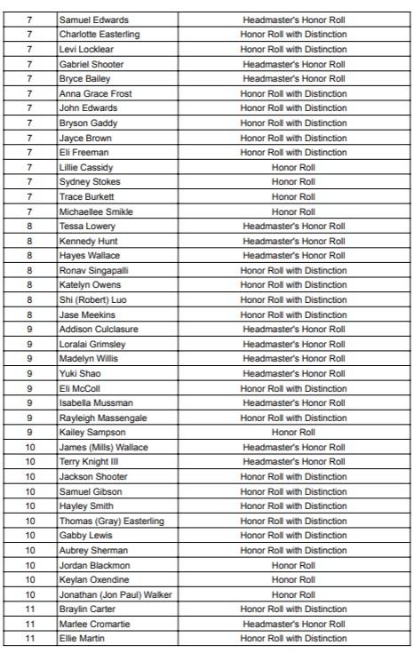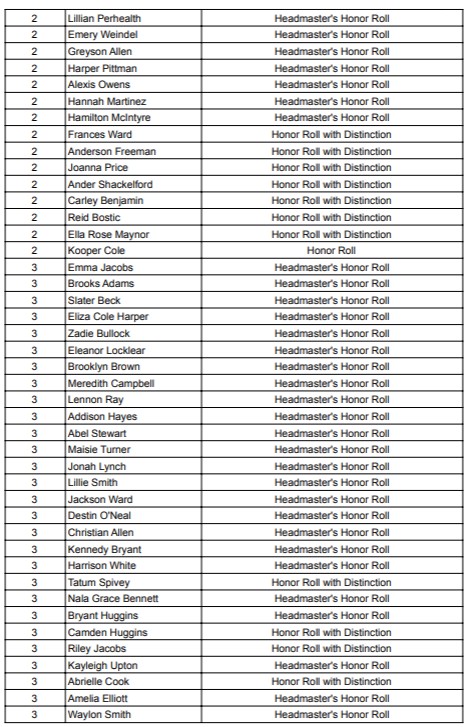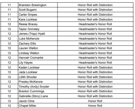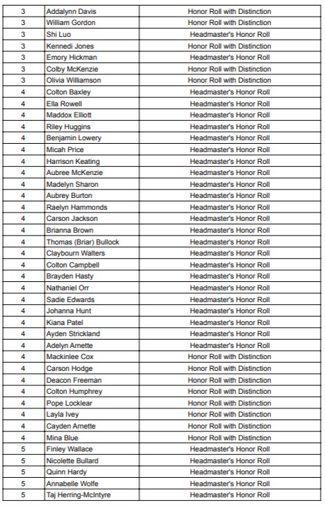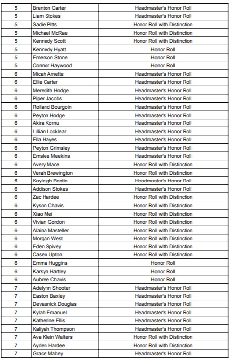Dillon Christian School Announces its Quarter 1 Honor Roll. Brent Hardy is the Headmaster.