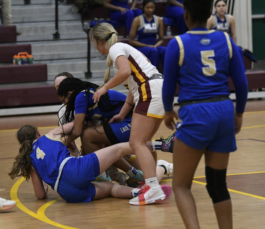 The Warriors’ Molly Andrews connected for a 2-point basket. Shayla Johnson banked in a 2-point basket for the Lady Wild Gators with 5:33 remaining in the second quarter. Lake View’s Callie Smith hit a 3-point basket with 3:59 remaining in the first half to cut the Warriors’ lead to 3 points, 12-9. Both Dillon and Lake View cheerleading squads encouraged their teams to make a great effort throughout. A great pass from Braylen Clark to Warrior Chloe Powell netted a 2-point basket. The Wild Gators’ Sophia Rogers hit a long 3-point shot. At halftime, Dillon Christian School Warriors were up 16-13.