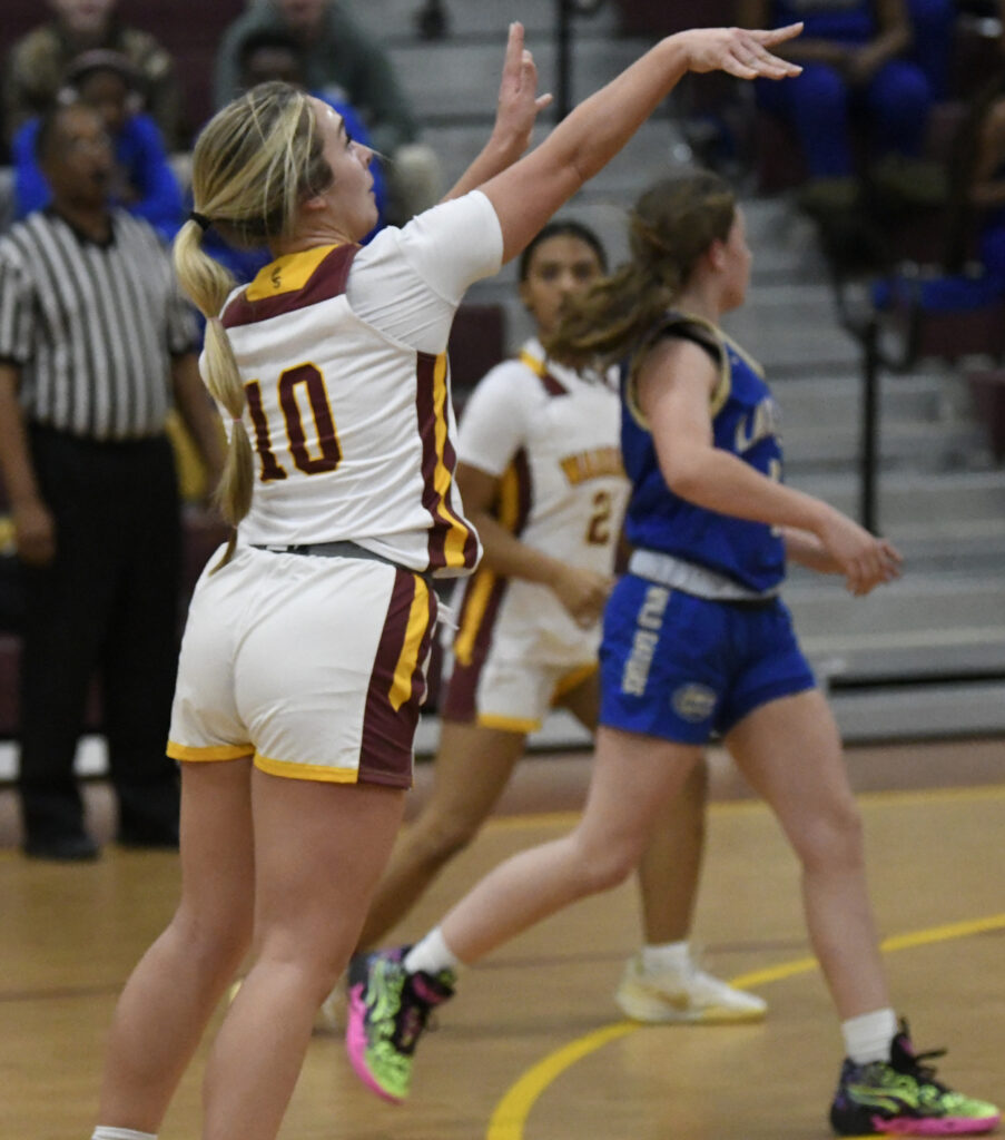 Braylin Carter sank a free throw to begin the final quarter of play followed by a 2-point basket to give the Lady Warriors a 10-point lead, 30-20. Lake View’s Alexis Blackman sank a 2-point basket. The Warriors’ Chloe Powell sank a free throw. With 3:52 remaining in the game, Lake View hit a 3-point basket. Dillon Christian School’s Braylin Carter connected for another free throw. Lake View managed a 3-point basket with 1:28 remaining in the game to cut Dillon Christian School’s lead to 5-points, 33-28. The Warriors’ Alayna Locklear sank 2 free throws. Lake View’s Callie Smith sank a free throw to close out the scoring in the final moment.