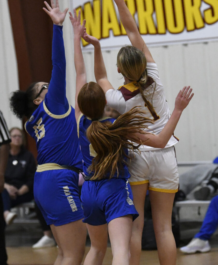 In the opening moments of the third quarter, Lake View connected for a 3-point basket to knot the score at 16. The Warriors answered with a 3-point basket to go up 19-16. Lake View’s Jocelyn Myers shot was blocked followed by Shayla Johnson’s shot blocked by Warrior Shelby Dial. With 4:59 remaining in the third quarter, Da’Myra Page hit a 3-point basket to knot the score at 19. The Warriors’ Chloe Powell’s attempted layup failed. Chloe Powell sank a free throw to give the Warriors a slim 1-point lead. The Wild Gators’ Sophia Rogers was fouled on an attempted layup with 3:37 remaining in the third quarter. Sophia Rogers sank a free throw to knot the score at 20. Braylen Carter managed a 3-point score the old-fashioned way, a 2-point basket and a free throw, to give Dillon Christian School a 23-20 lead. Braylin Carter made a 2-point basket to give the Warriors a 25-20 lead. As time was expiring in the third quarter, the Warriors managed another 2-point basket to close out the third quarter up by 7 points, 27-20.
