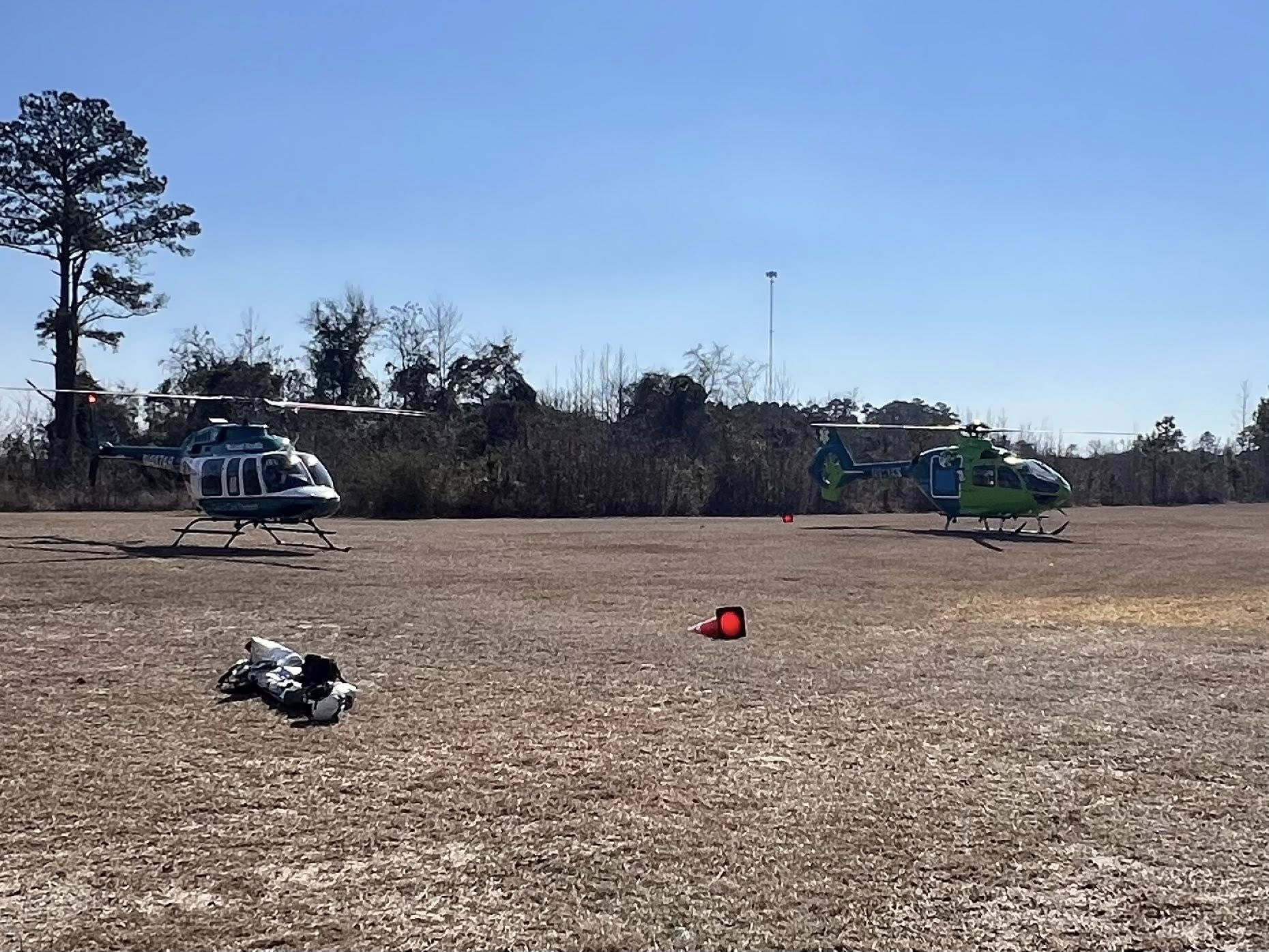 Dillon County Fire Station 4 responded to a 2 car MVA with entrapment today. Engine 41 crews helped with removing 2 patients from vehicle and then they were tasked with setting up a Landing zone for 2 Helicopters for transport.