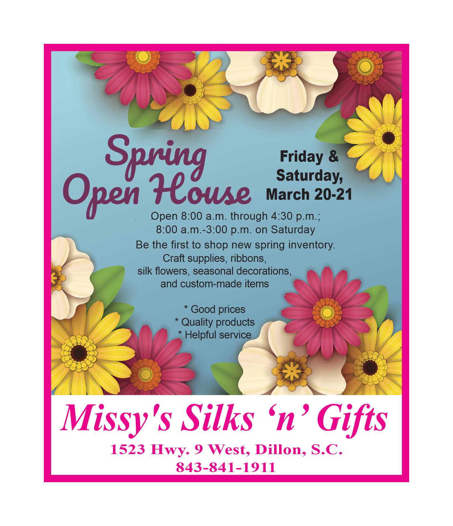 If you wish to report an accessibility issue, have any questions or need assistance, please contact The Dillon County News, LLC, P.O. Box 1712, Dillon, S.C. 29536 or by email at bf@dillonnews.org or our alternate email, dilloncountynews@yahoo.com.