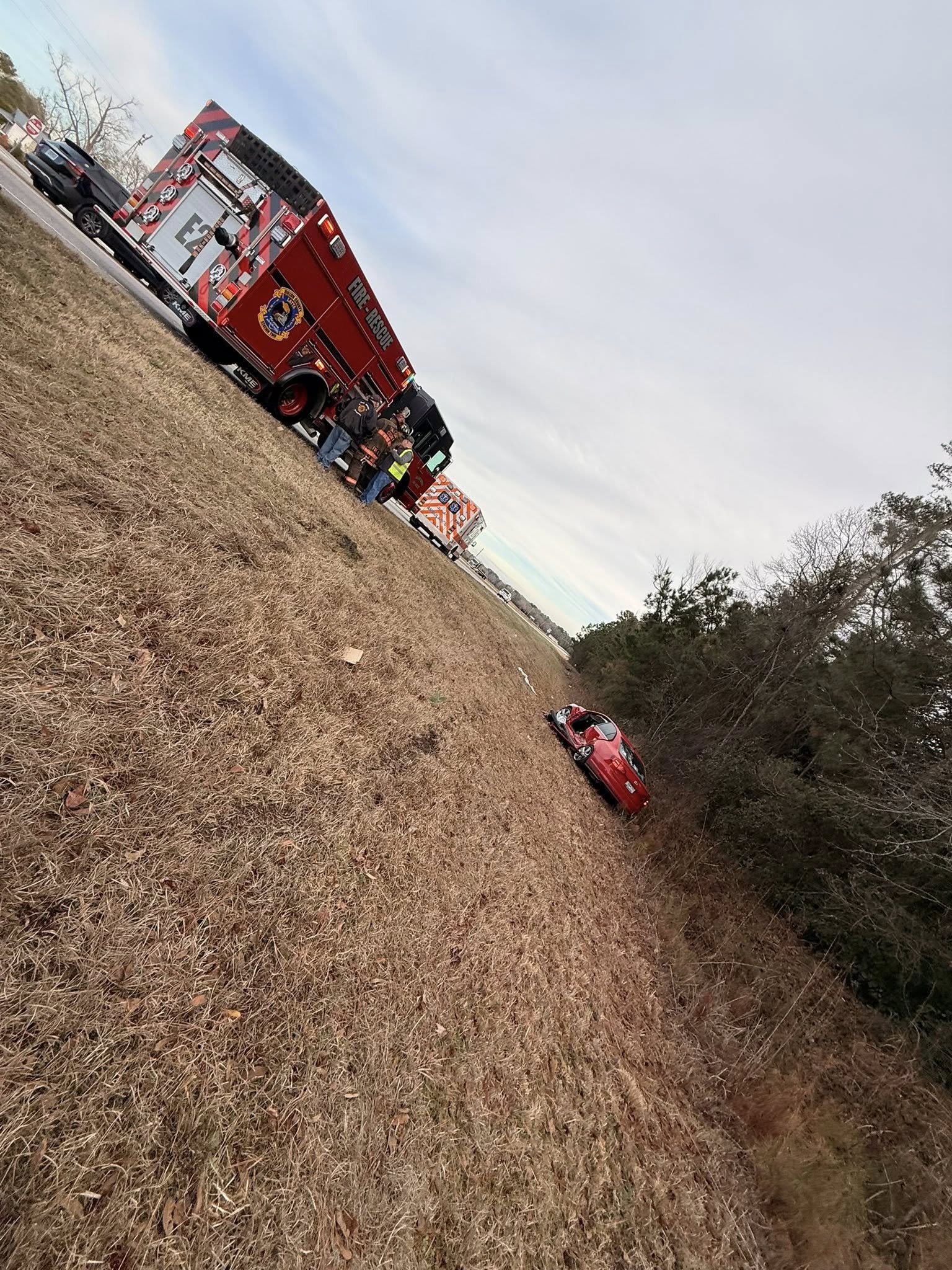 Engine 2 arrived on scene and confirmed a two-vehicle crash with one occupant entrapped inside a vehicle. Quick extrication efforts were initiated, and the occupant was successfully removed and transported by EMS.