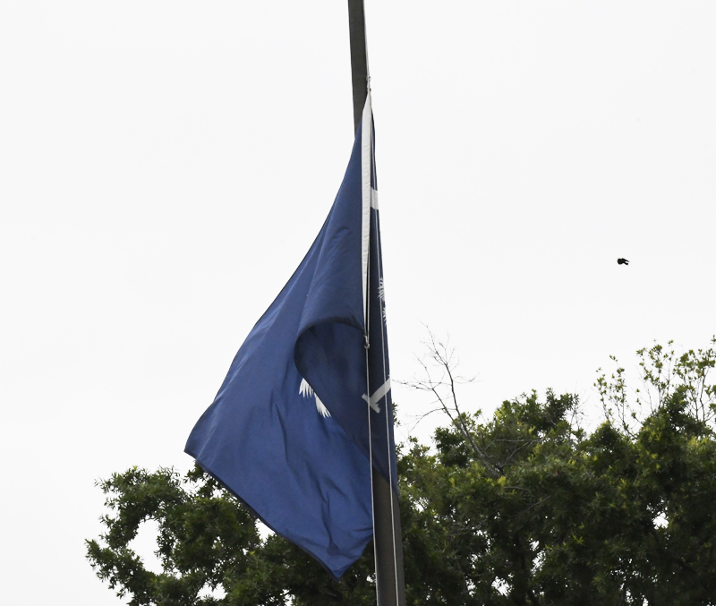 Flags Raised to Full Staff: US Flag Army Veteran Harry Moore/SC Flag Army Veteran Charlie Vance.