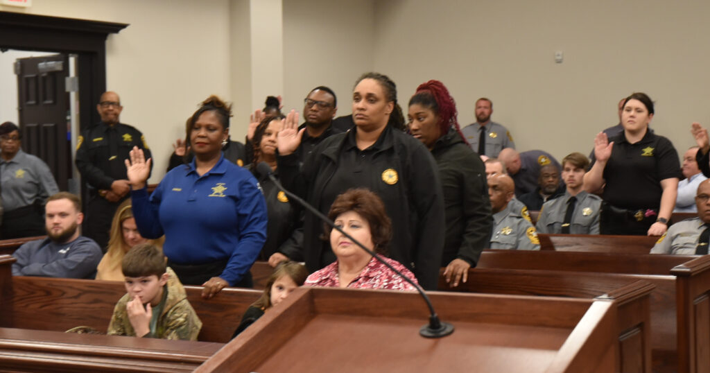 Sheriff Jamie Hamilton, the Dillon County Sheriff’s Deputies, and the Dillon County Detention Officers were sworn into office today (Tuesday, January 7) by new Clerk of Court Marquita Britton. A video of the ceremony appears above.