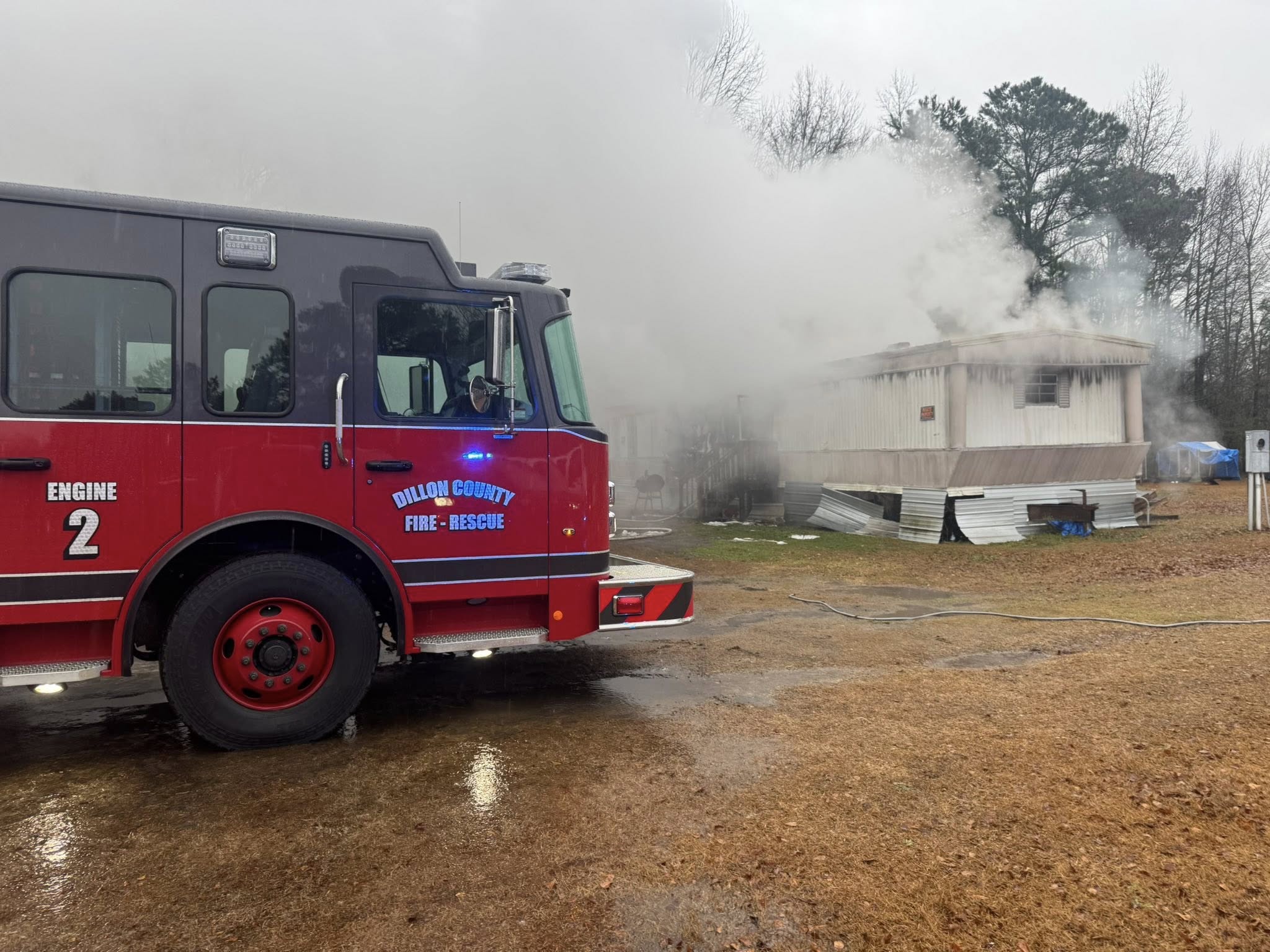 Dillon County Station Two responded at approximately 4:00 PM on February 4, 2026, to reports of a residential structure fire. Volunteer firefighters arrived on scene and confirmed a working house fire.