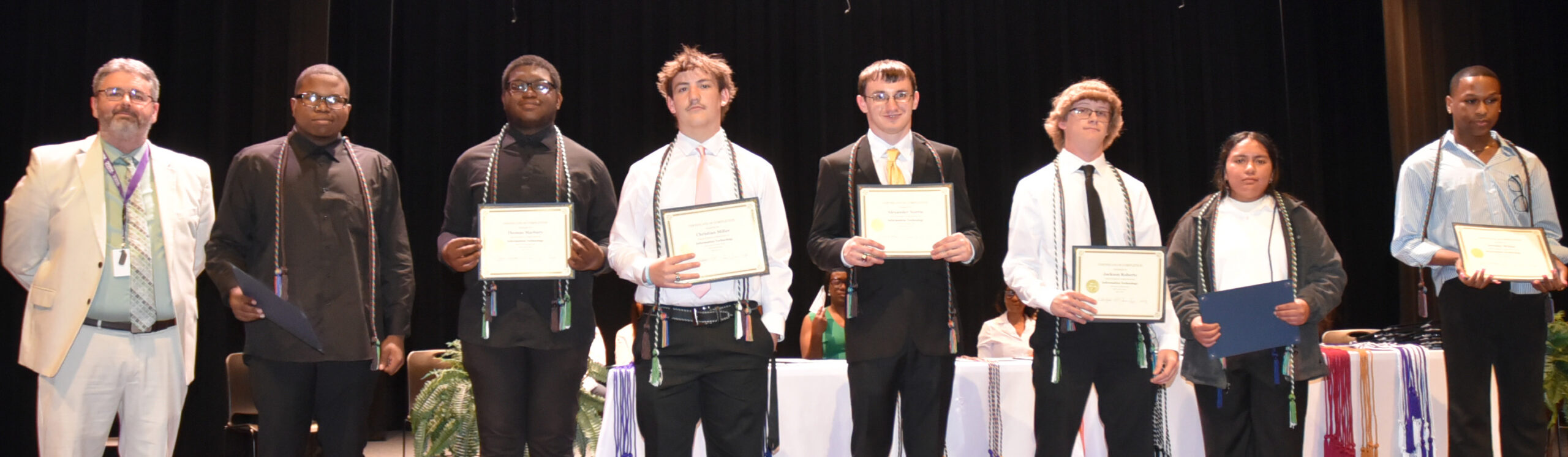 IT: William Carnes, Jaron Ford, Avery Hopkins, Thomas Marbury, Christian Miller, Alexander Norris, Jackson Roberts, Madelyn Rodriguez, and Jeremy White (Students with two cords are two-part double-completers.)
