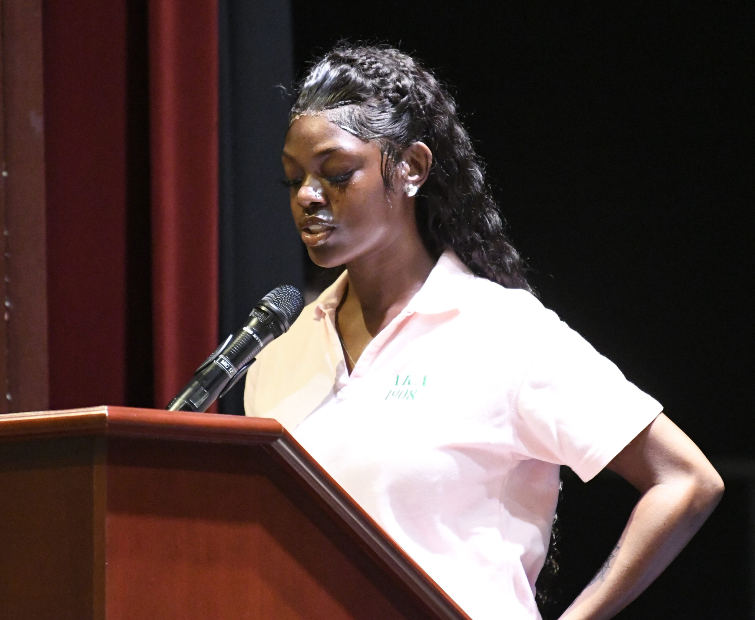 Jayla Goodwin, a former Health Science student and a proud 2021 graduate of Dillon High School, said that while she was at Dillon Technology Center she learned about the value of hard work, perseverance, and believing in herself. She obtained her CNA license before graduating high school. She has now graduated from the College of Charleston with a Bachelor of Science degree in Public Health. She hopes to further her studies and become a pediatrician. She told the students that they were more capable than they knew and that this was only the beginning for them.