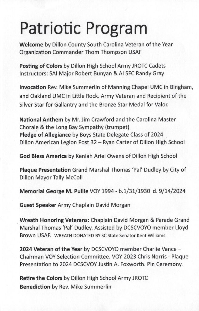 Dillon County Veterans Day Ceremony Is Monday, November 11th