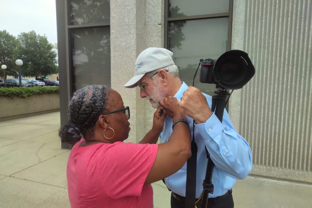 Dillon County Veterans Affairs Officer Valerie Graves recognized Johnnie Daniels at the Dillon County Memorial Service by presenting him with and pinning a Vietnam Veteran Service pin on behalf of his efforts in honoring his brother, Jimmie, with the Help For Veterans, Inc. organization. Daniels said he was deeply honored and touched by this gesture.