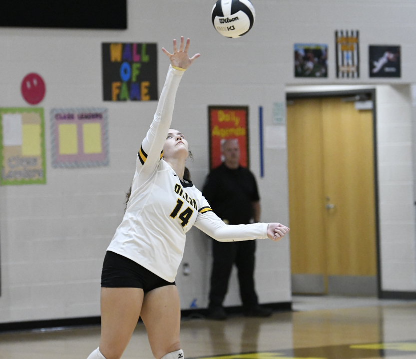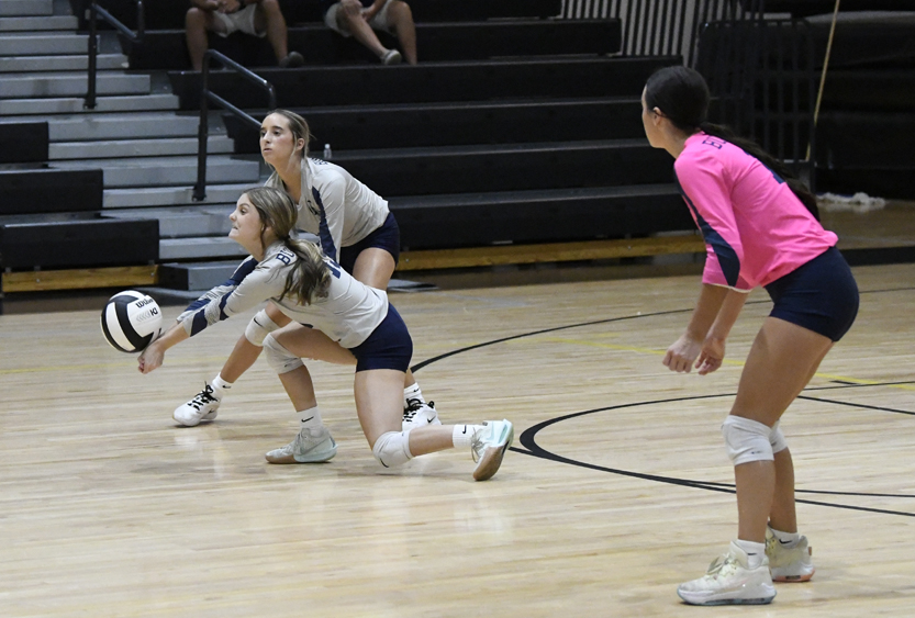 The scores were: set 1, Dillon 25 and Georgetown 16; set 2, Dillon 25 and Georgetown 16; set 3, Dillon 16 and Georgetown 25; and set 4, Dillon, 25 and Georgetown 18.
