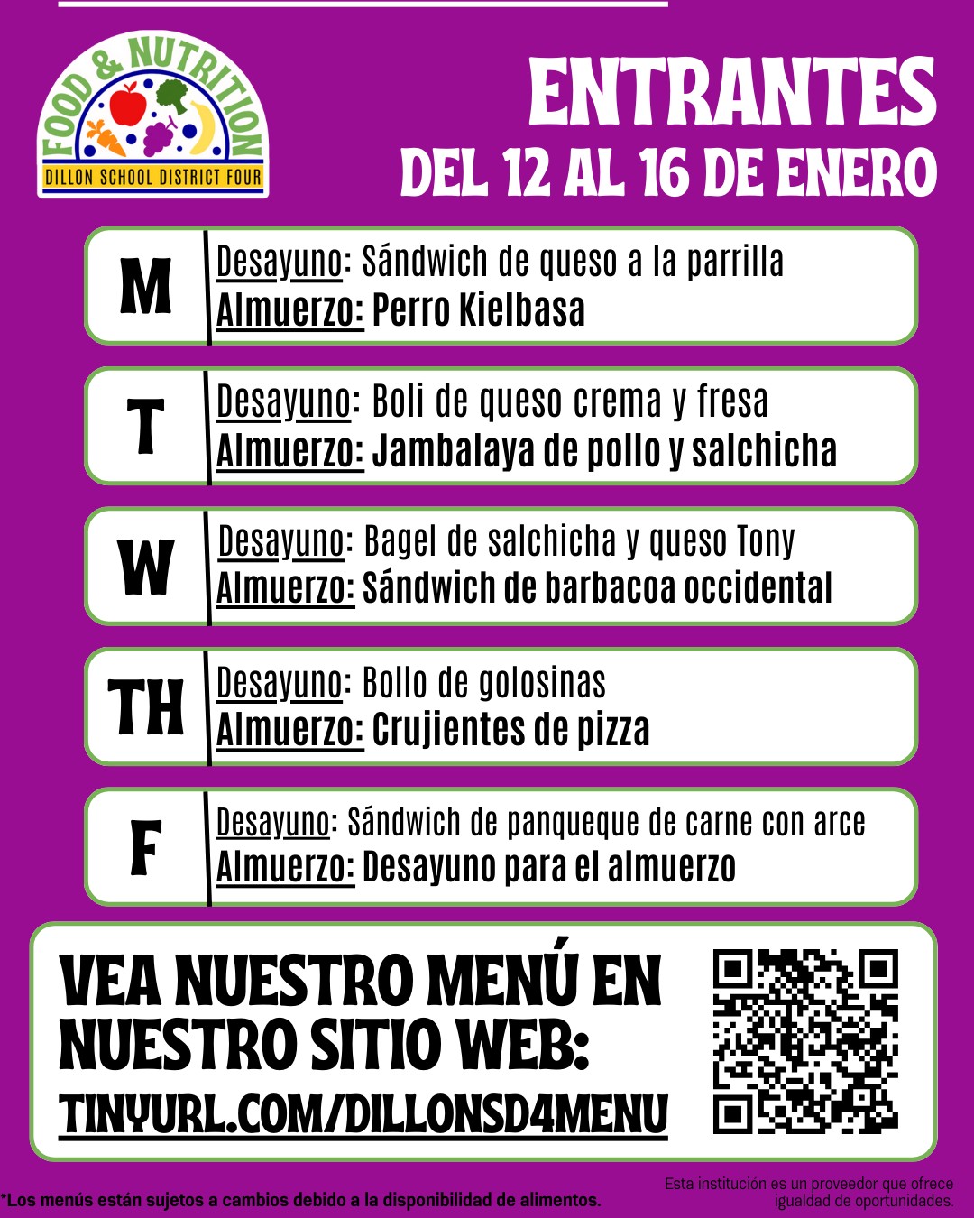 • Dillon District Four Breakfast and Lunch Menus: January 12-16