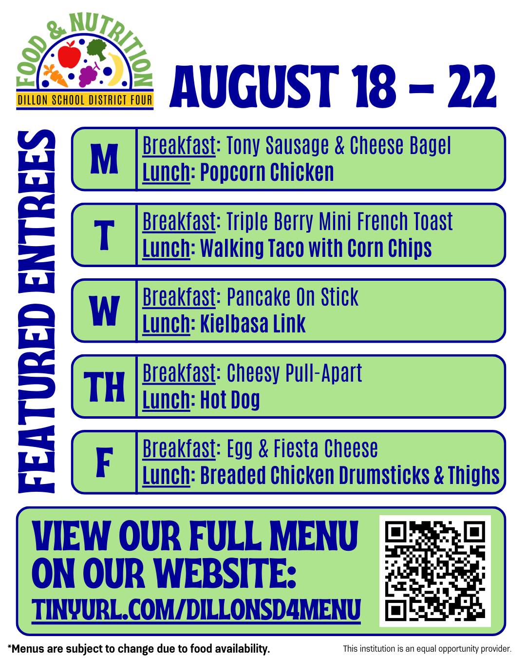 Hold onto your taste buds – a fantastic week is on its way to Dillon School District Four cafeterias! Prepare to indulge in delicious surprises.