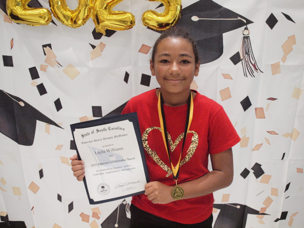 The Governor’s Citizenship Award recipient for Dillon Elementary is Layla Williams. She is the daughter of Pamela Hopkins. She is in Mrs. Cox’s third grade class.