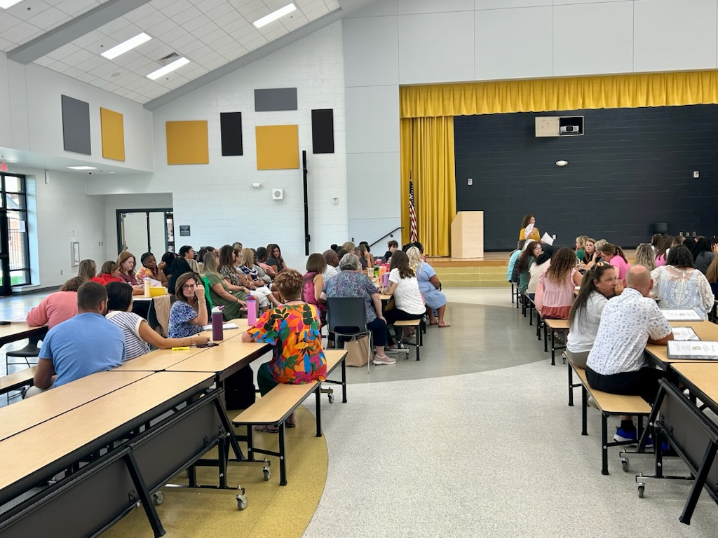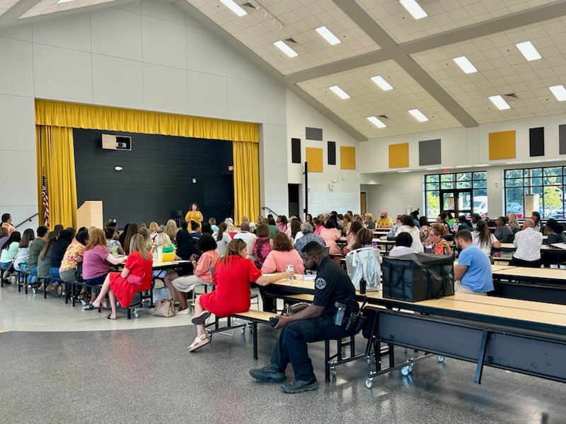 Teachers returned back to school today to prepare for the new year. Dillon teachers are shown here taking part in teacher orientation/breakfast at the Dillon Middle School Media Center.